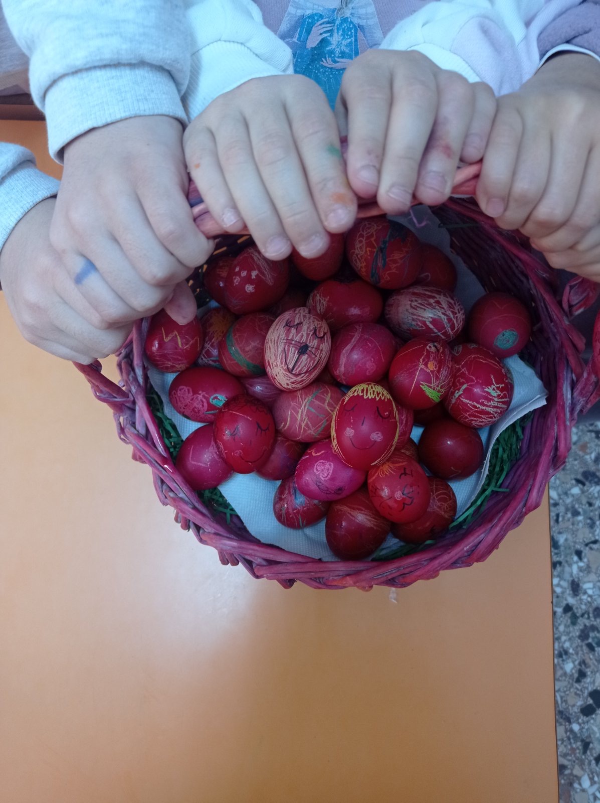 Έπειτα, ετοιμάσαμε τις πασχαλινές μας κάρτες καθώς και τα καλαθάκια μας που γέμισαν με σοκολατένιες λιχουδιές και πασχαλινά αυγά.