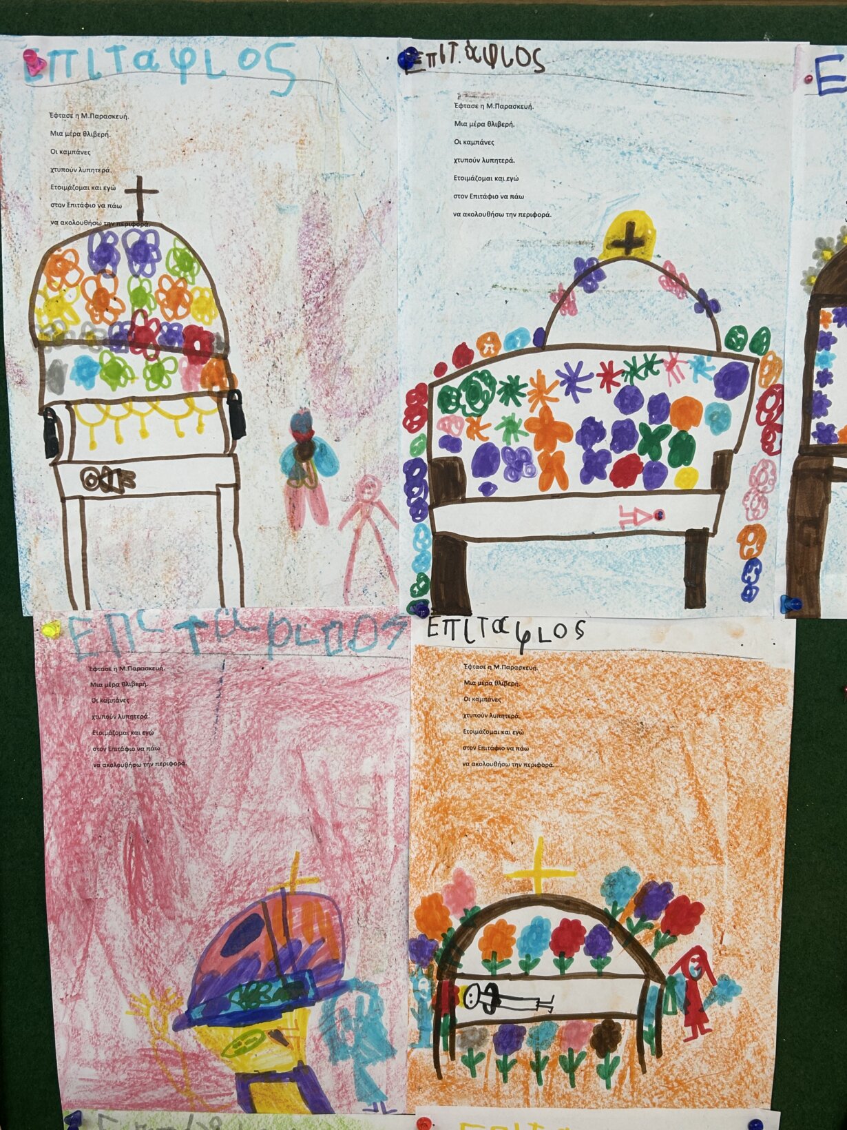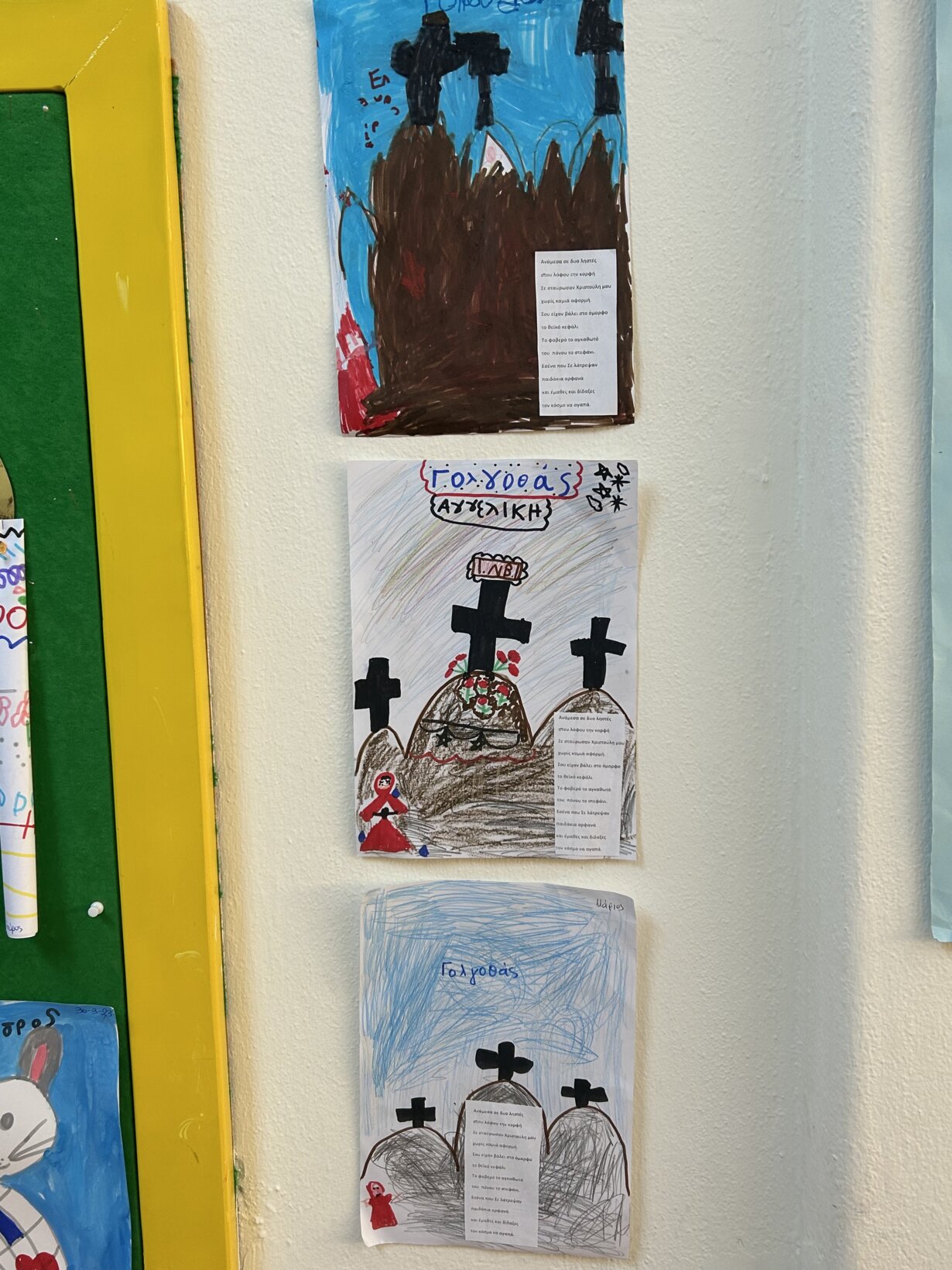 Στη συνέχεια, μέσα από ποικίλες κατασκευές μεταφερθήκαμε νοητά στον γολγοθά και στον Επιτάφιο.