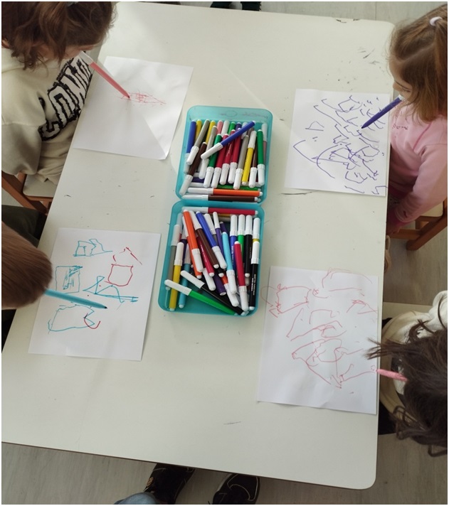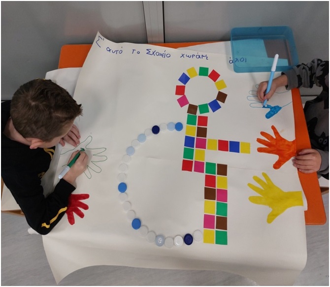 Συζητήσαμε μαζί τους για τους τρόπους και τις τεχνικές που χρησιμοποιούν τα άτομα αυτά για την αυτοεξυπηρέτηση τους και την ψυχαγωγία τους. Στο πλαίσιο αυτό και τείνοντας στην καλλιέργεια της ενσυναίσθησης τα παιδιά προσπάθησαν να ζωγραφίσουν με το στόμα.