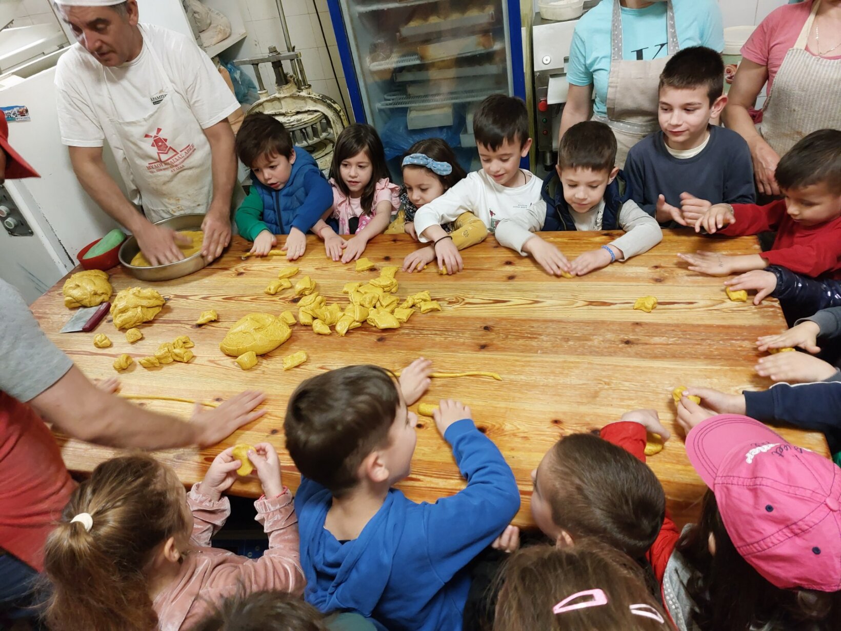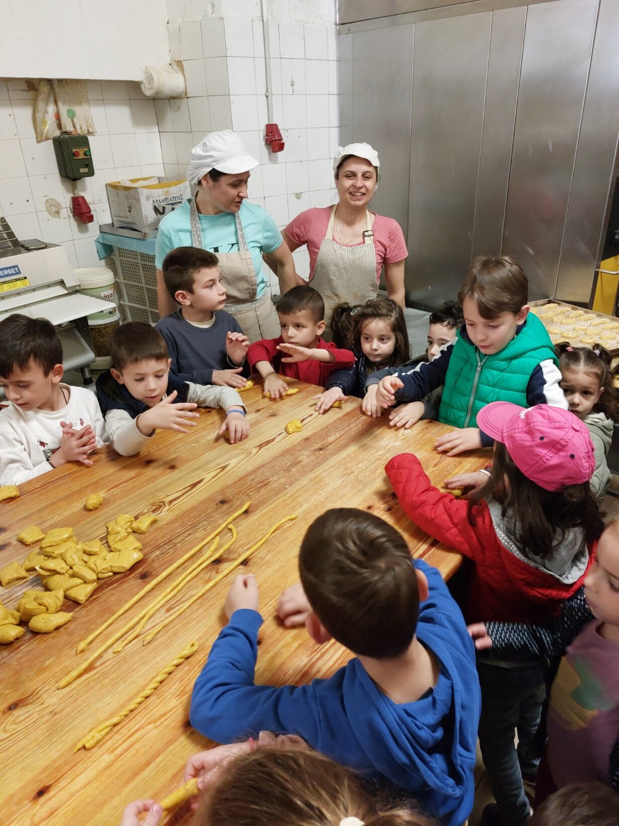 Με τις χαρούμενες φωνές των μαθητών μας γέμισε,σήμερα,Τετάρτη 24 Απριλίου 2024 ο φούρνος του κ.Σιαπλαουρα!Τα παιδιά είδαν από κοντά τον χώρο που φτιάχνονται τα ψωμάκια,τα κουλούρια και τα τσουρέκια!! Οι υπεύθυνοι τους έδειξαν την διαδικασία και τον τρόπο παρασκευής των προϊόντων και στην συνέχεια τα παιδιά είχαν την ευκαιρία να ζυμώσουν το ζυμάρι τους και να πλάσουν κουλουράκια!!