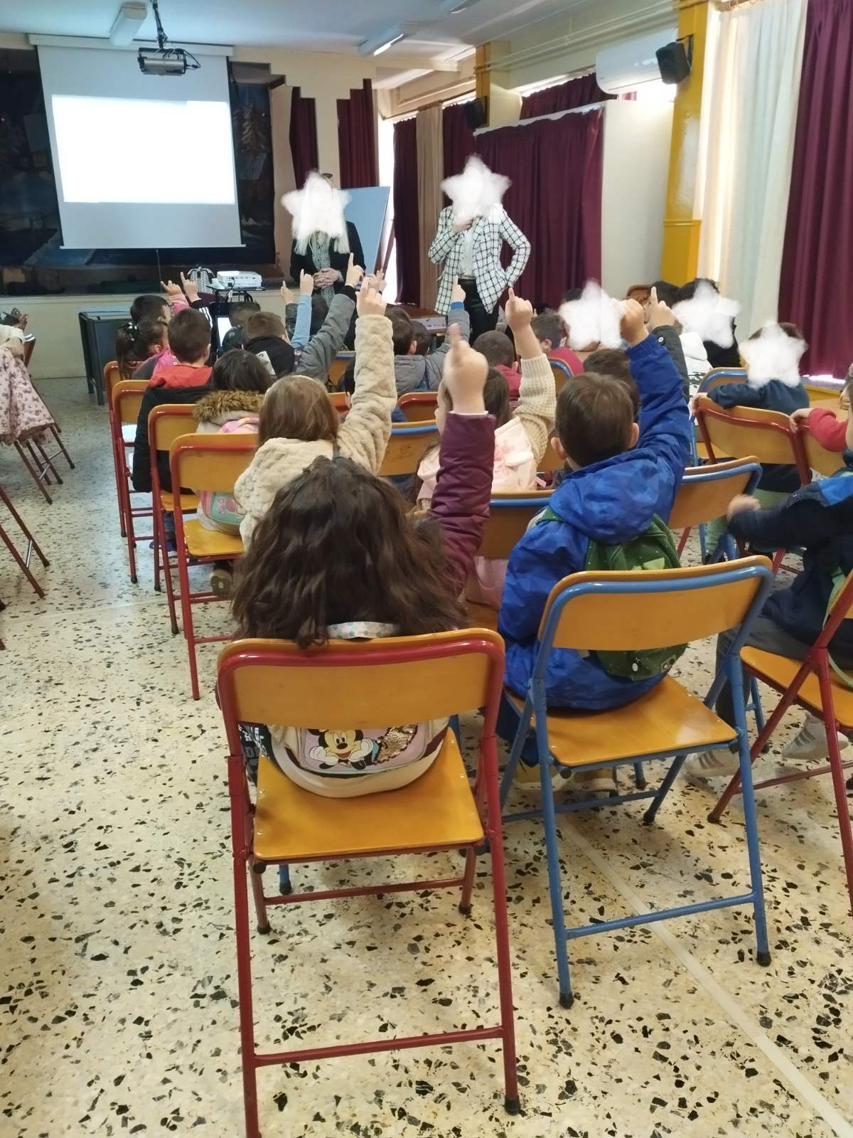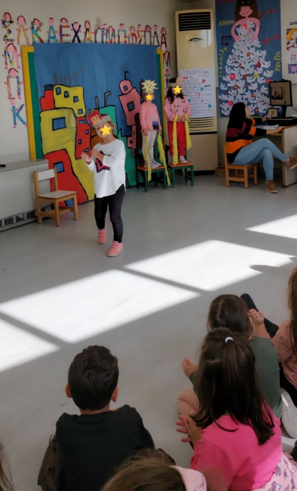 Στη συνέχεια τα παιδιά της Α’ τάξης μας περίμεναν στην αίθουσα εκδηλώσεων μαζί με τις δασκάλες τους, τη Κοινωνική λειτουργό και τη ψυχολόγο του Δημοτικού Σχολείου.