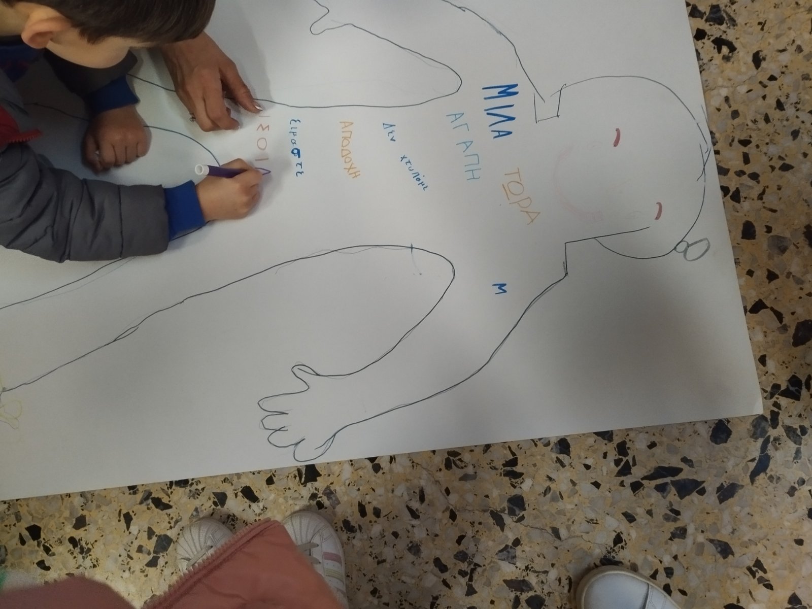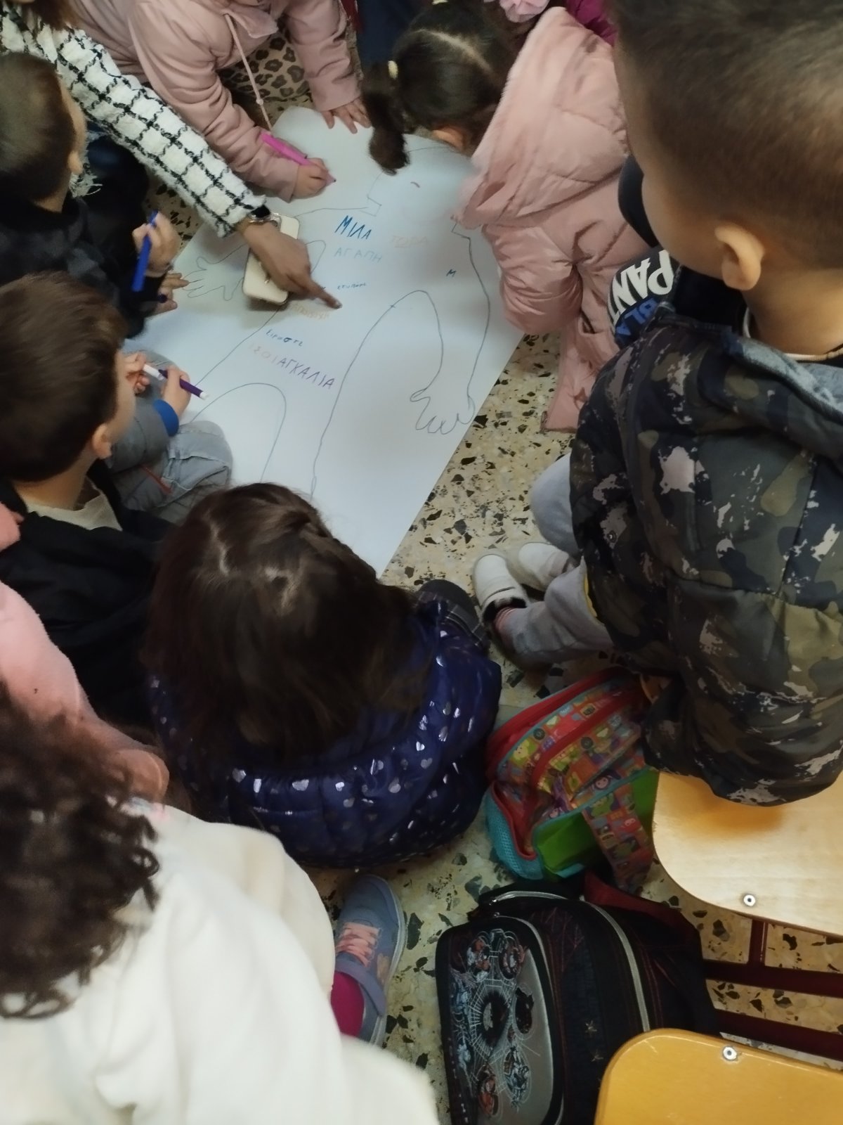 Εκεί με αφορμή την Παγκόσμια ημέρα Σχολικής βίας(6 Μαρτίου), αφού παρακολουθήσαμε ένα εκπαιδευτικό βίντεο (ο Όλιβερ Μπάτον) μιλήσαμε για τη βία (λεκτική και σωματική), για τα αρνητικά συναισθήματα που μας προκαλεί καθώς και για το τι πρέπει να κάνουμε όταν αυτό συμβαίνει είτε σε εμάς είτε σε κάποιον άλλο.