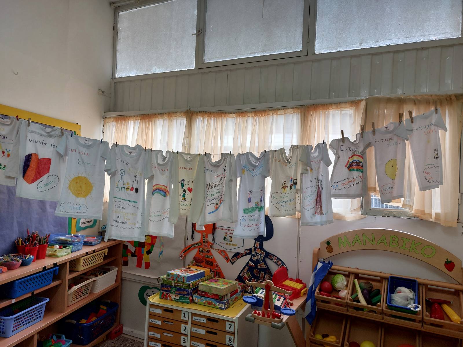 -Σε λευκά μπλουζάκια αποτυπώσαμε τις δικές μας ευτυχισμένες στιγμές και απλώσαμε την μικρή μας μπουγάδα στα σχοινιά της τάξης μας.