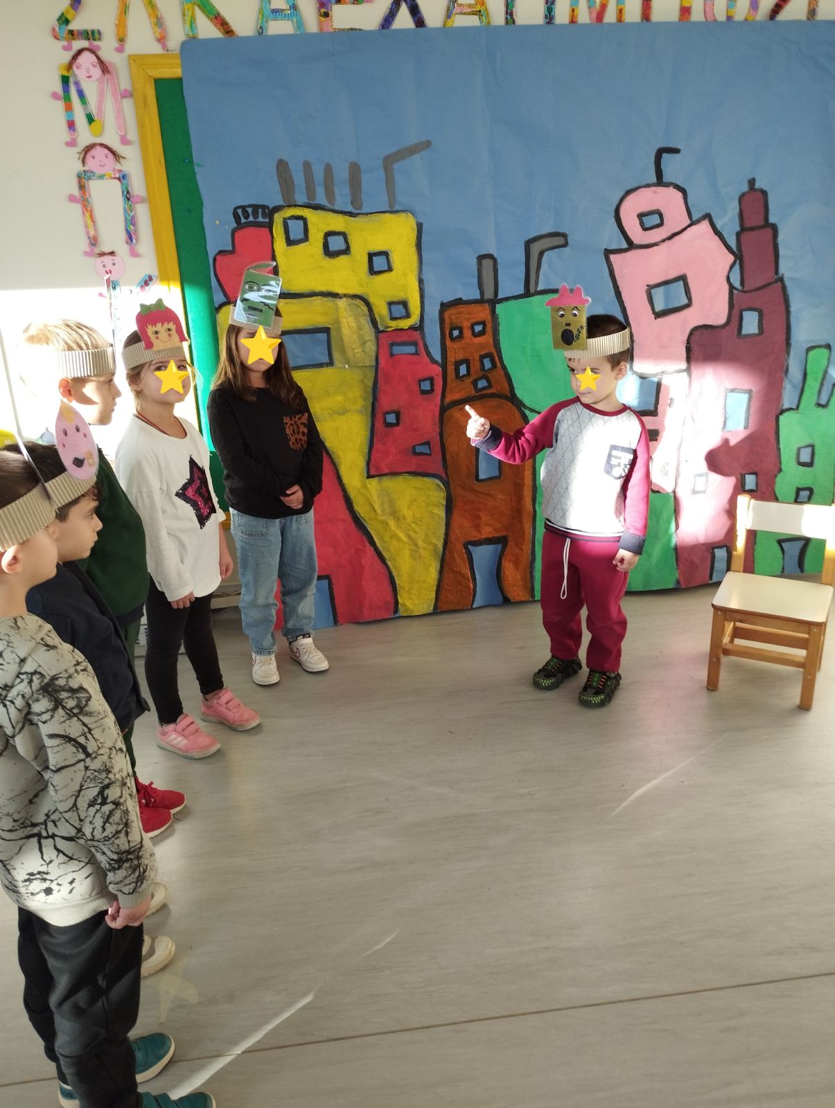 Στη δεύτερη επίσκεψη των παιδιών της Α’ Τάξης οι μαθητές των Ολοήμερων τμημάτων του Νηπιαγωγείου είχαν ετοιμάσει μία έκπληξη στους φίλους τους. Λόγω της επετείου του Πολυτεχνείου ετοιμάσαμε μία θεατρική παράσταση εμπνευσμένη από το βιβλίο της Ευγενείας Φακίνου «Ντενεκεδούπολη».