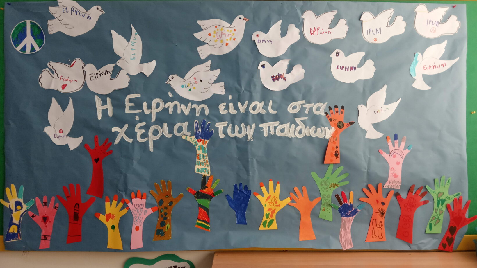 και τις επιπτώσεις που έχουν στην καθημερινή μας ζωή. Συμφωνήσαμε όλοι ότι θέλουμε την Ειρήνη και τονίσαμε την σημαντικότητα της για το καλό της ανθρωπότητας…και έτσι όπως ήμασταν χωρισμένοι σε δύο μεγάλες ομάδες φτιάξαμε τις αφίσες μας ,οι οποίες κατείχαν τον δικό τους χώρο στα σκηνικά των γιορτών και των δύο σχολείων!!