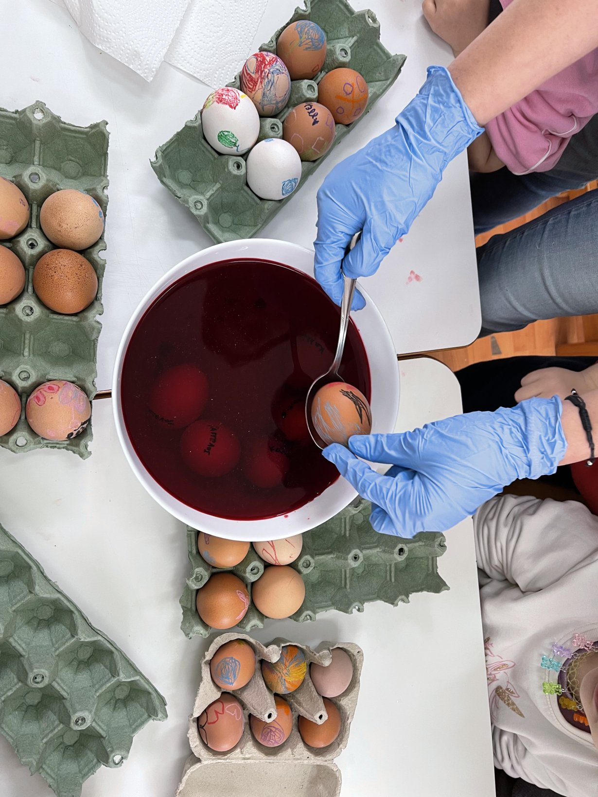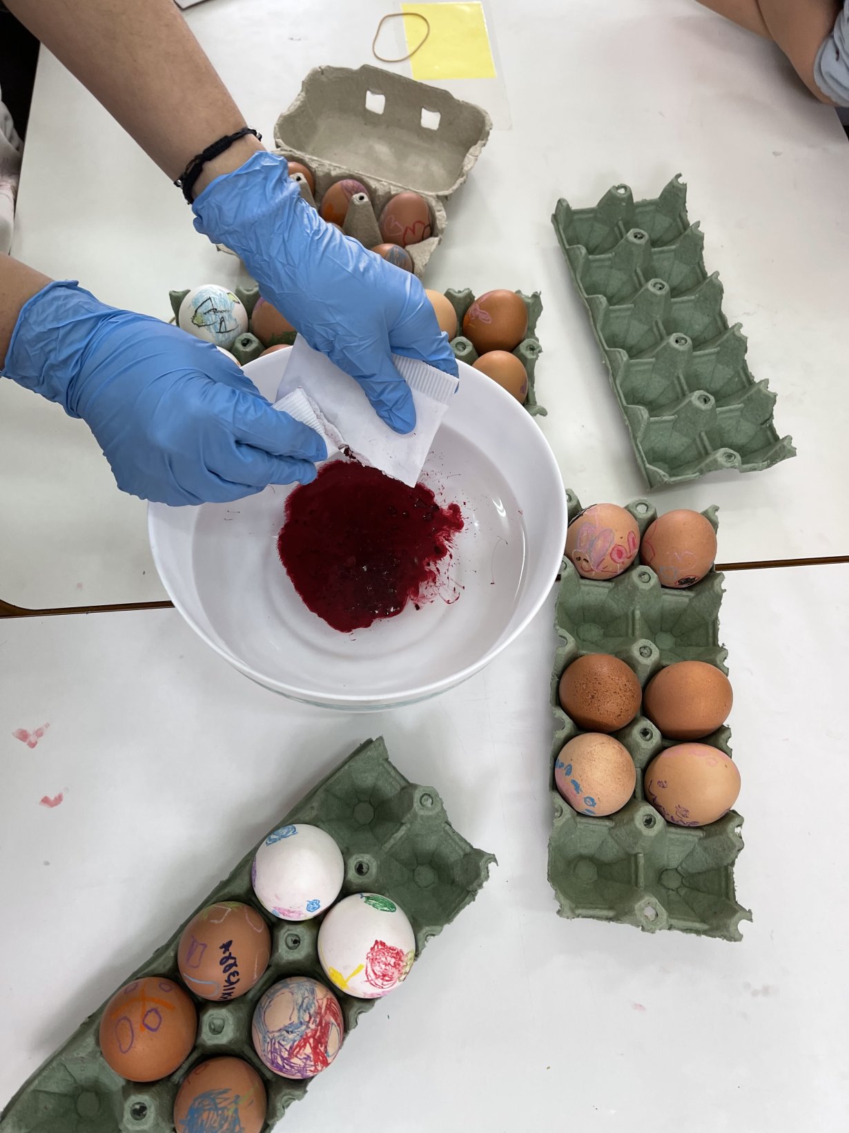 Βάψαμε αυγά και τα χεράκια μας έφτιαξαν πασχαλινές κατασκευές.