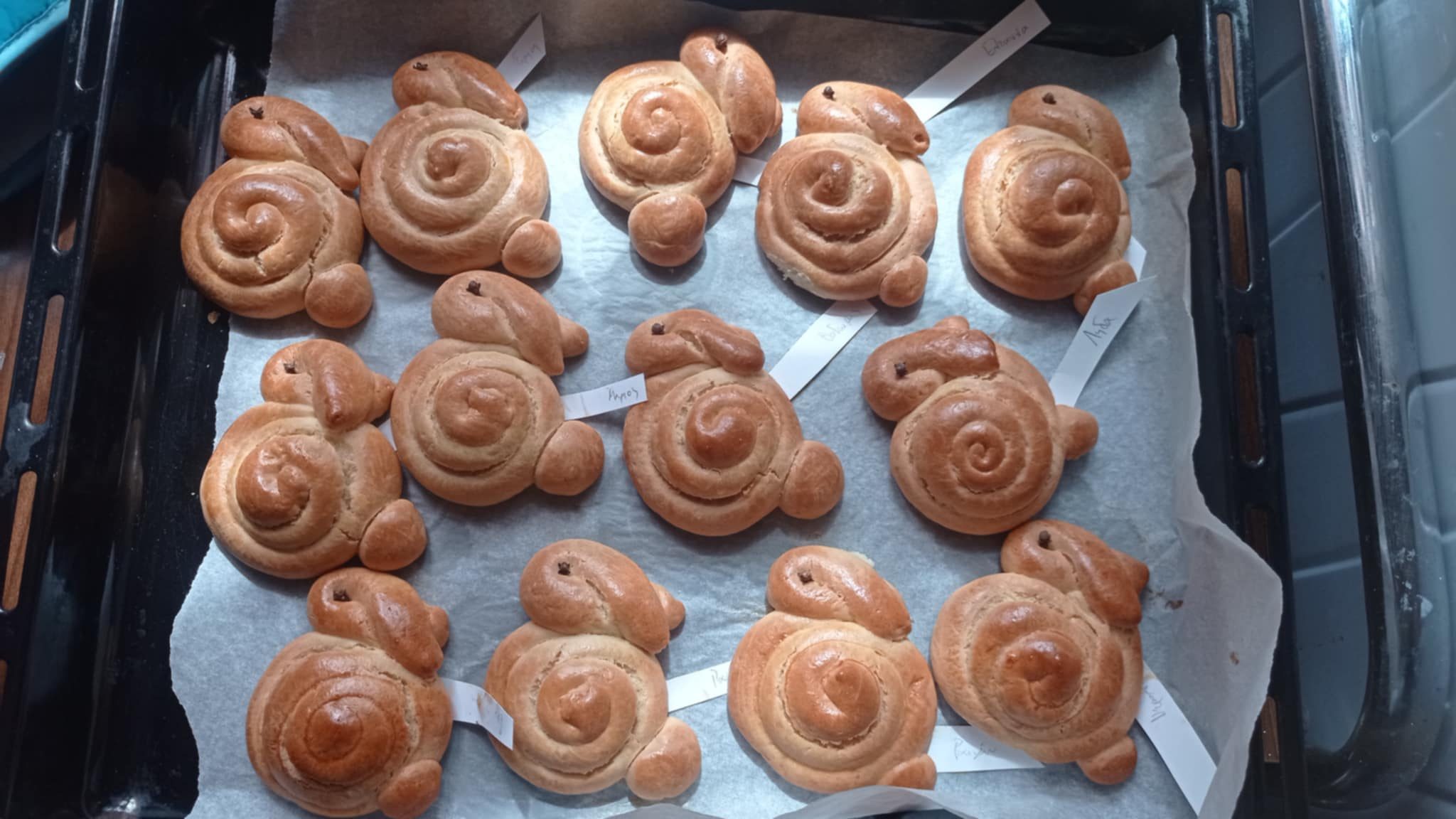 την τελευταία μέρα που κλείσαμε για τις διακοπές του Πάσχα, φτιάξαμε Λαζαράκια με την κυρία Αργυρώ και την κυρία Αρετή,