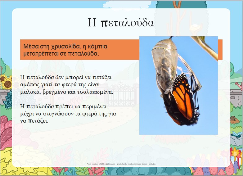 και Διαβάσαμε πολλά αξιόλογα βιβλία, σε σχέση με την πεταλούδα, όπως από τη σειρά Μελισσάκια, εκδόσεις Πατάκη,