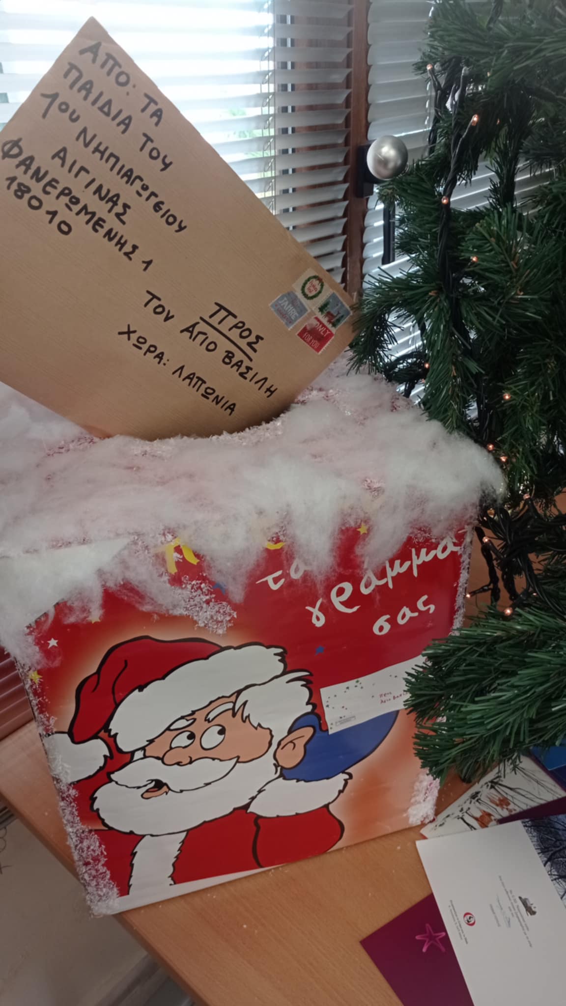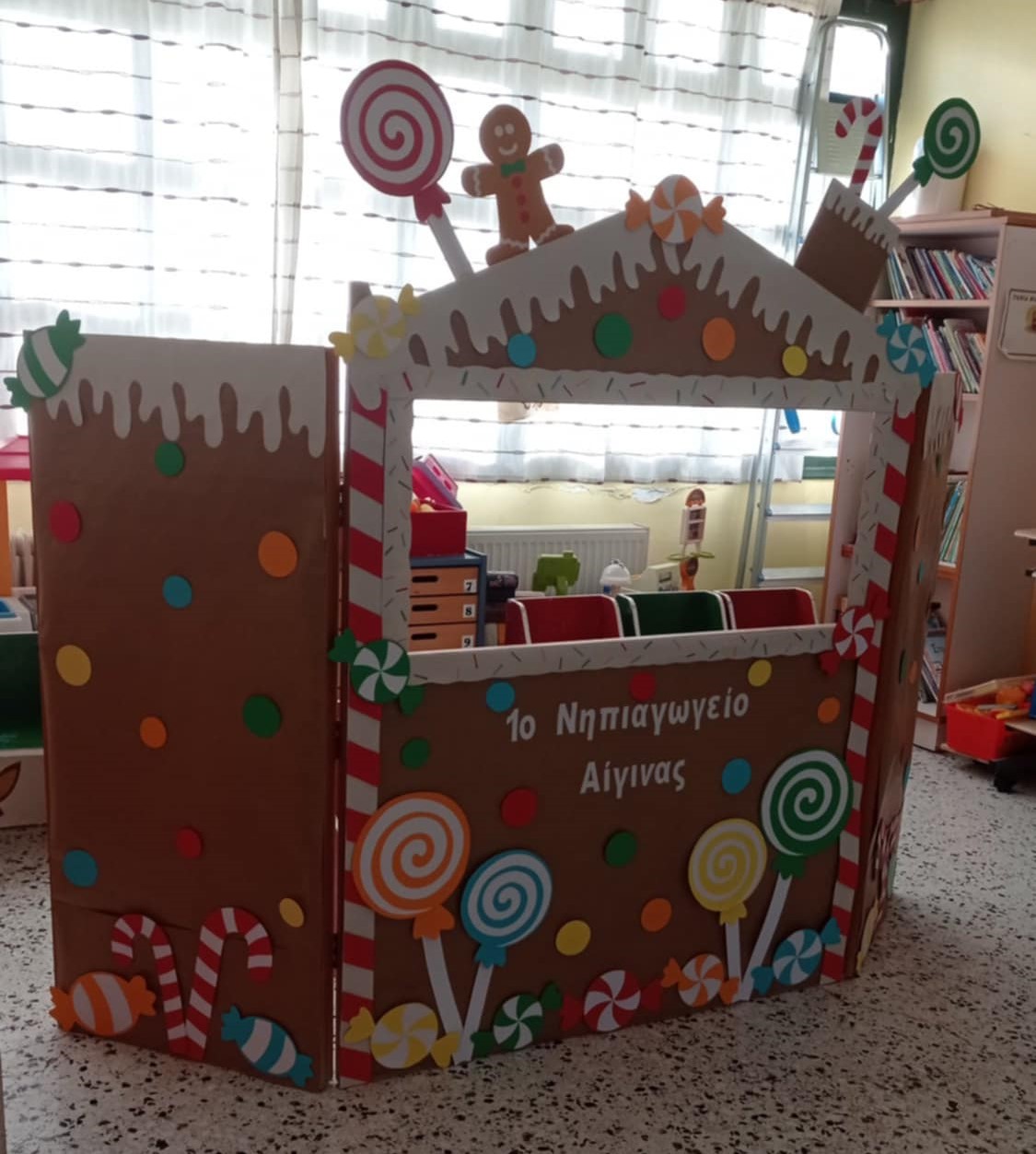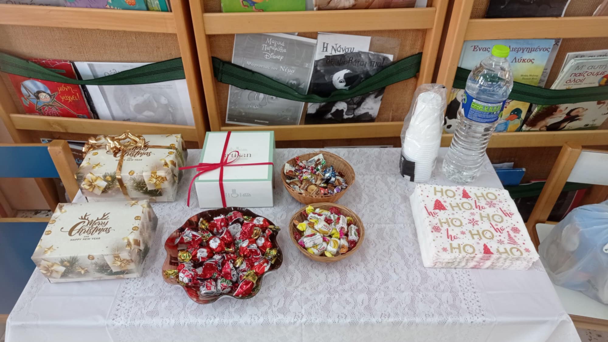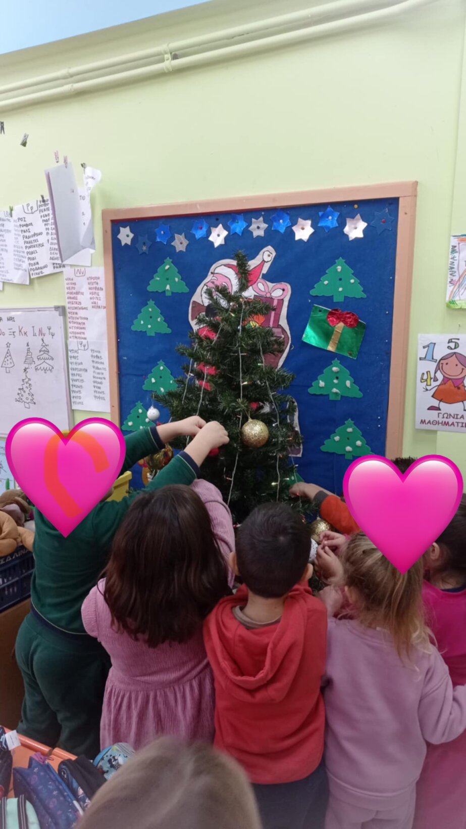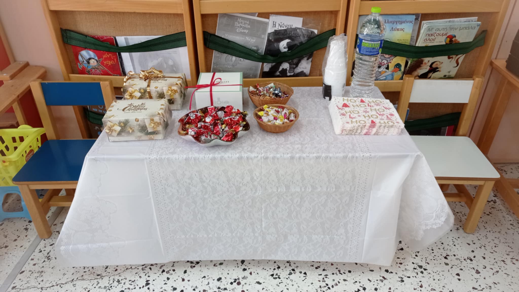 κάθισαν μαζί τους και ζύμωσαν κουλουράκια, φωτογραφήθηκαν στο υπέροχο σκηνικό της καλής μας κυρίας Αργυρώς, έφαγαν τα υπέροχα γλυκά που έφεραν οι μανούλες, χόρεψαν με τις δασκάλες τους και στόλισαν το δεντράκι με τις ευχές που έγραψαν με τους γονείς τους!!