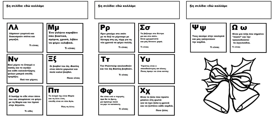 Δημιουργήσαμε ομαδικά το Αλφαβητάρι των Χριστουγέννων. Κάθε παιδί έλυνε το αίνιγμα και το εικονογραφούσε. (Την ιδέα την πήραμε από το e.k koukou).