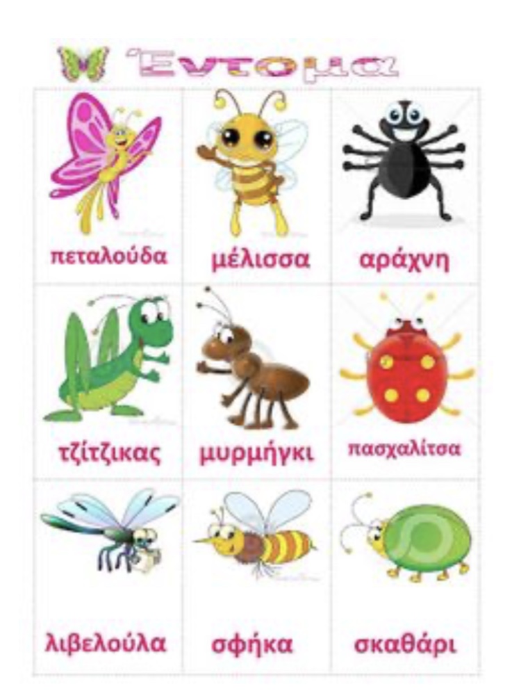 Έντομα ( συνέχεια) Βγες μια βόλτα στην εξοχή ή στην αυλή σου και κοίτα προσεκτικά ποια από τα παρακάτω έντομα βλέπεις. Ζωγράφισε κι εσύ ένα.