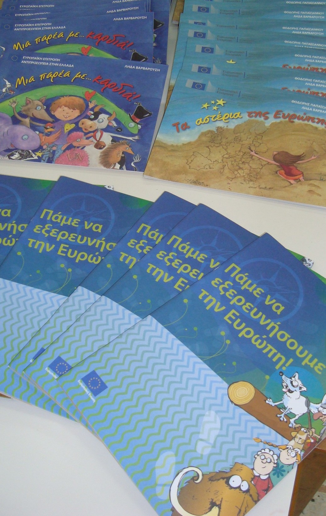 Η Ευρωπαϊκή Επιτροπή, έστειλε στο Νηπιαγωγείο μας εκπαιδευτικό υλικό (Βιβλία, χάρτες) για κάθε έναν/μία από τους/τις μαθητές/τριες μας για να γνωρίσουν την Ευρωπαϊκή Ένωση και να κατανοήσουν την ιδιότητα του “Ευρωπαίου Πολίτη”. Τα παιδιά μέσα από το συγκεκριμένο εκπαιδευτικό υλικό έρχονται σε επαφή με δράσεις της Ευρωπαϊκής Ένωσης που πραγματεύονται με την υπευθυνότητα, τη φύση, τις ανανεώσιμες πηγές ενέργειας, την υγιεινή διατροφή, την ασφάλεια και την αλληλεγγύη μεταξύ των χωρών και των πολιτών. Το υλικό θα χρησιμοποιηθεί για την υλοποίηση του προγράμματος etwinning και άλλων δράσεων του σχολείου μας.