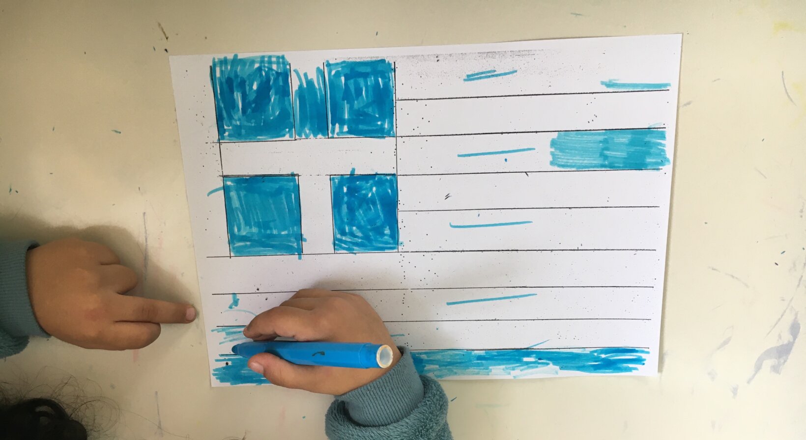 Παρατηρώντας τον πίνακα ζωγραφικής “Γκουέρνικα” του Πάμπλο Πικάσο, που θεωρείται από τα πιο σημαντικά έργα με αντιπολεμικό μήνυμα, φτιάξαμε τους δικούς μας με κιμωλία.