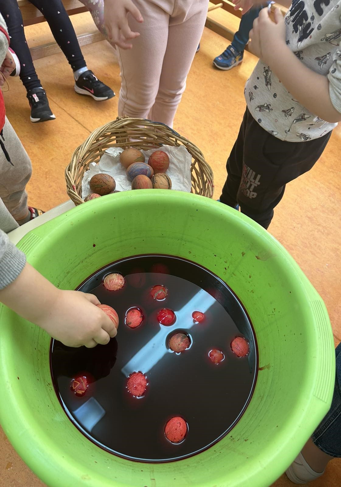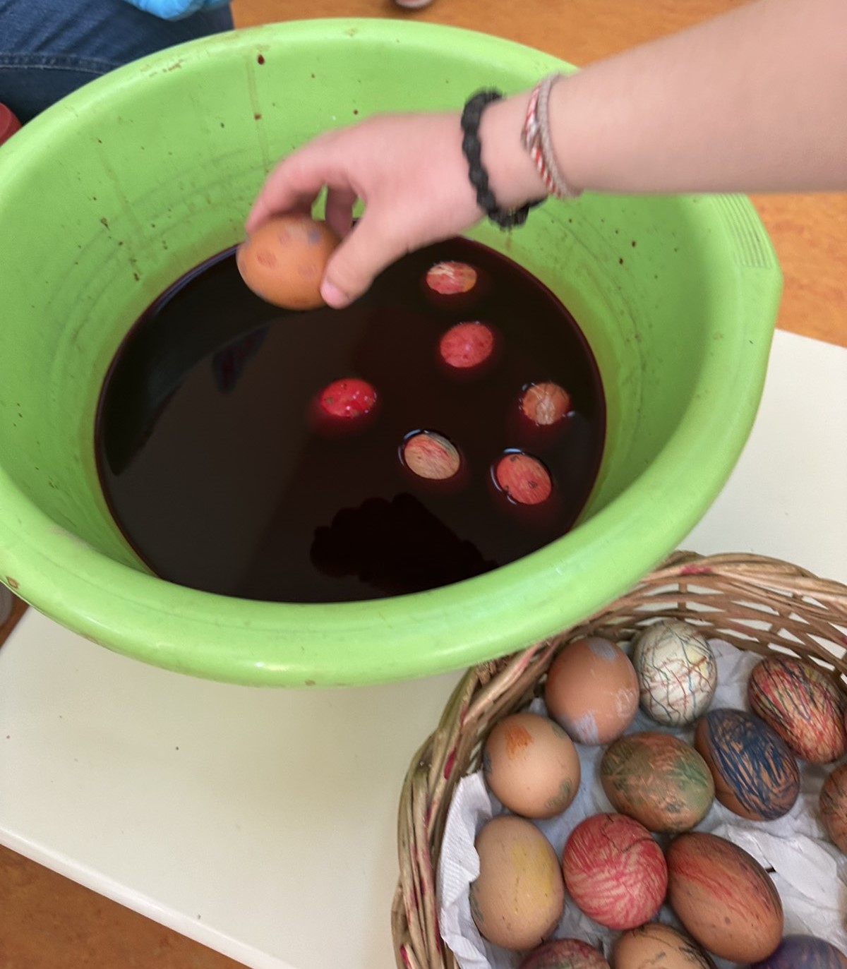 Φυσικά βάψαμε και αυγά για τα καλαθάκια μας.