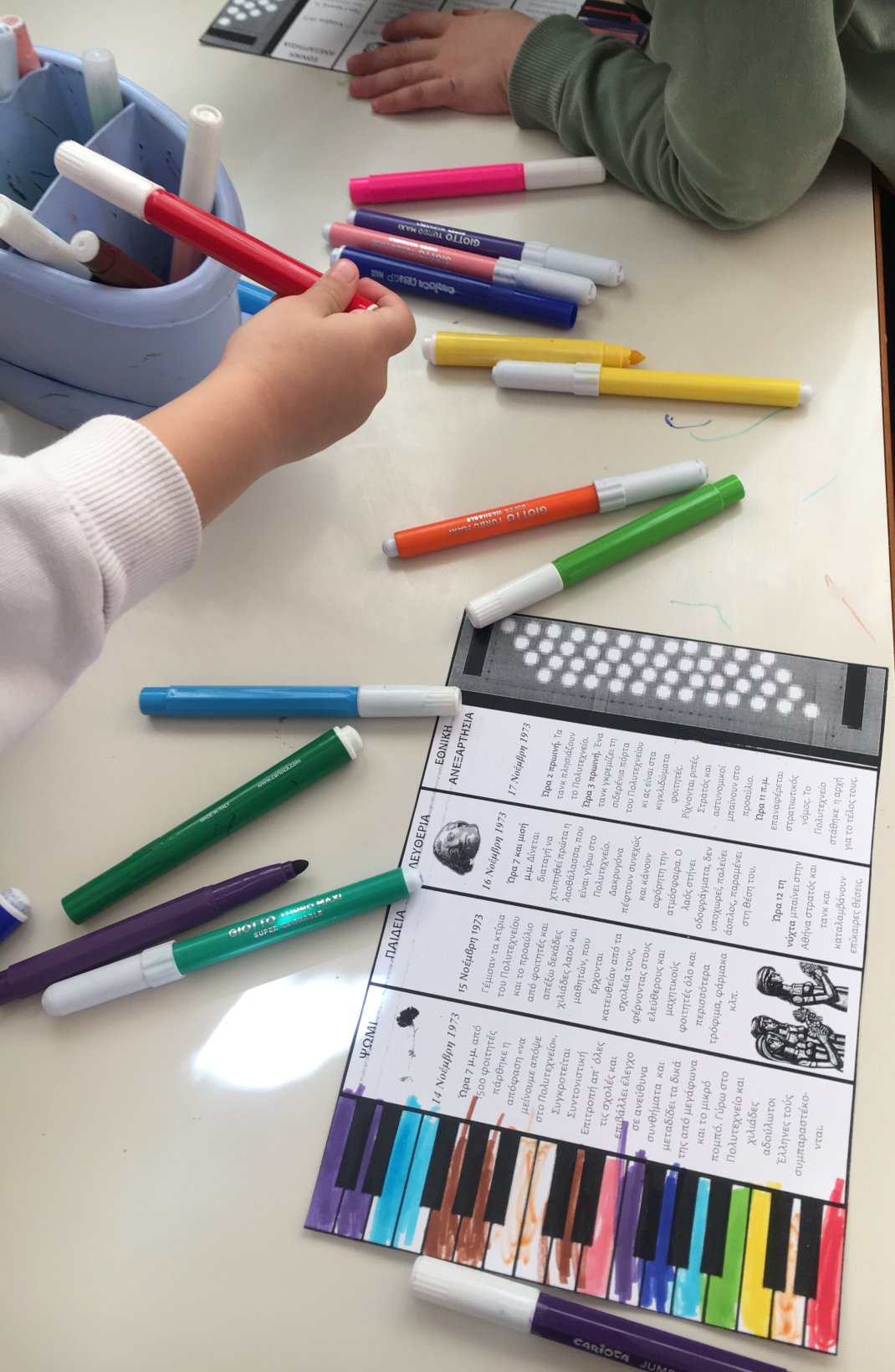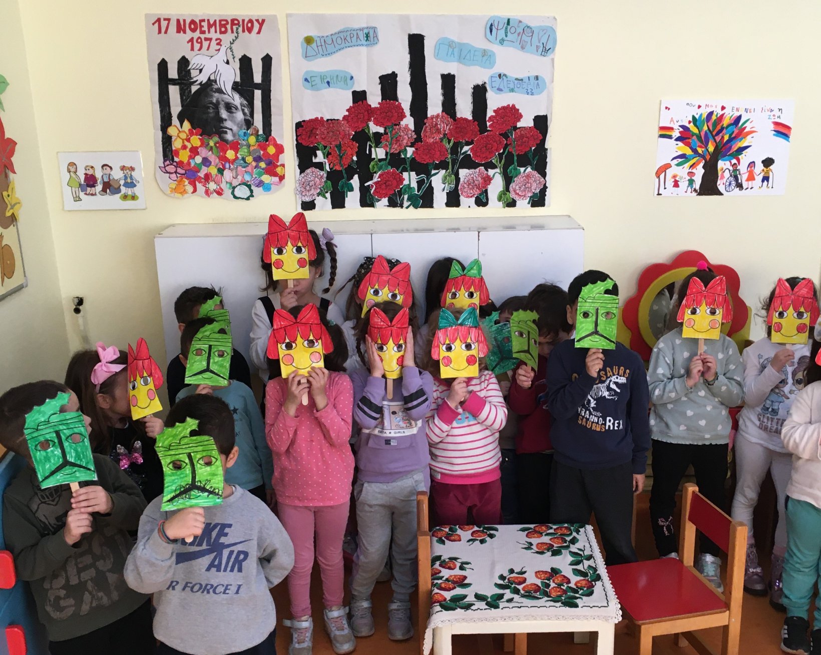 Κάθε χρόνο στο νηπιαγωγείο μας τιμούμε την επέτειο του Πολυτεχνείου, μια σημαντική στιγμή της ιστορίας μας που μιλά για ελευθερία, ειρήνη και δημοκρατία. Με απλό και κατανοητό τρόπο, μέσα από συζητήσεις, εικόνες και δημιουργικές δραστηριότητες, βοηθάμε τα παιδιά να κατανοήσουν τις αξίες που αναδείχθηκαν εκείνες τις ημέρες και να καλλιεργήσουν στάσεις σεβασμού και συνεργασίας.