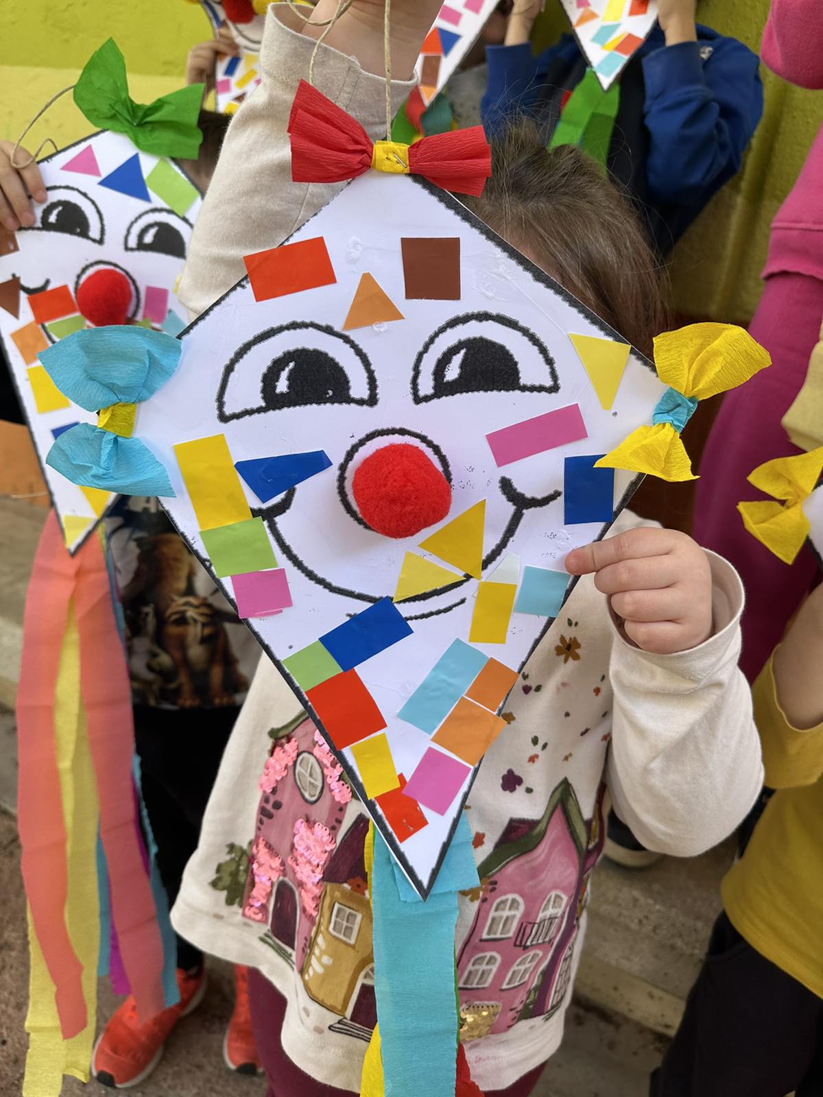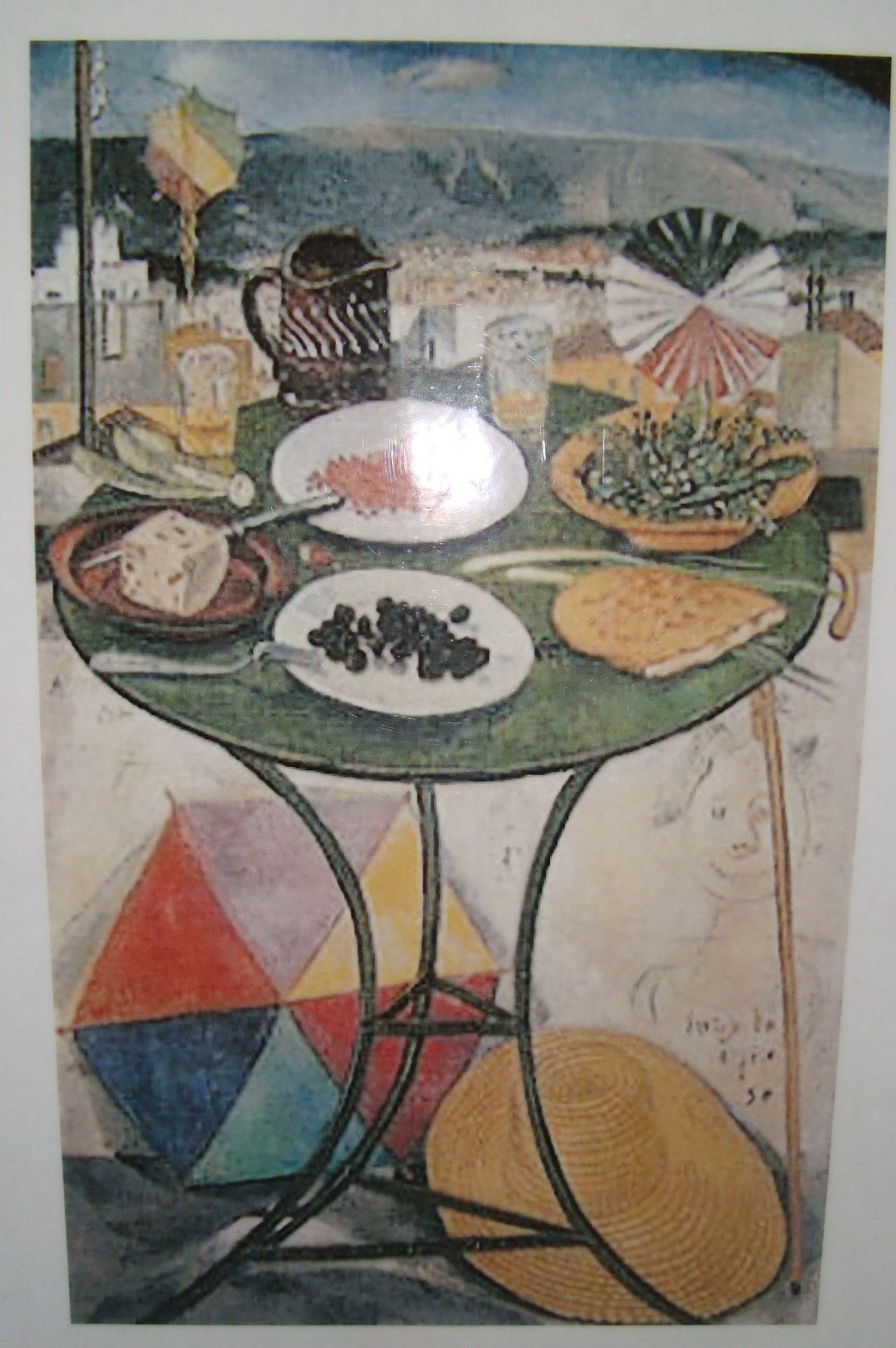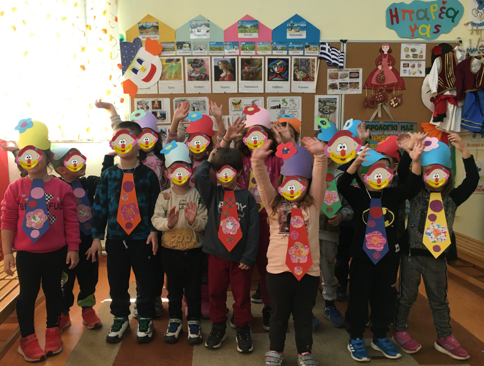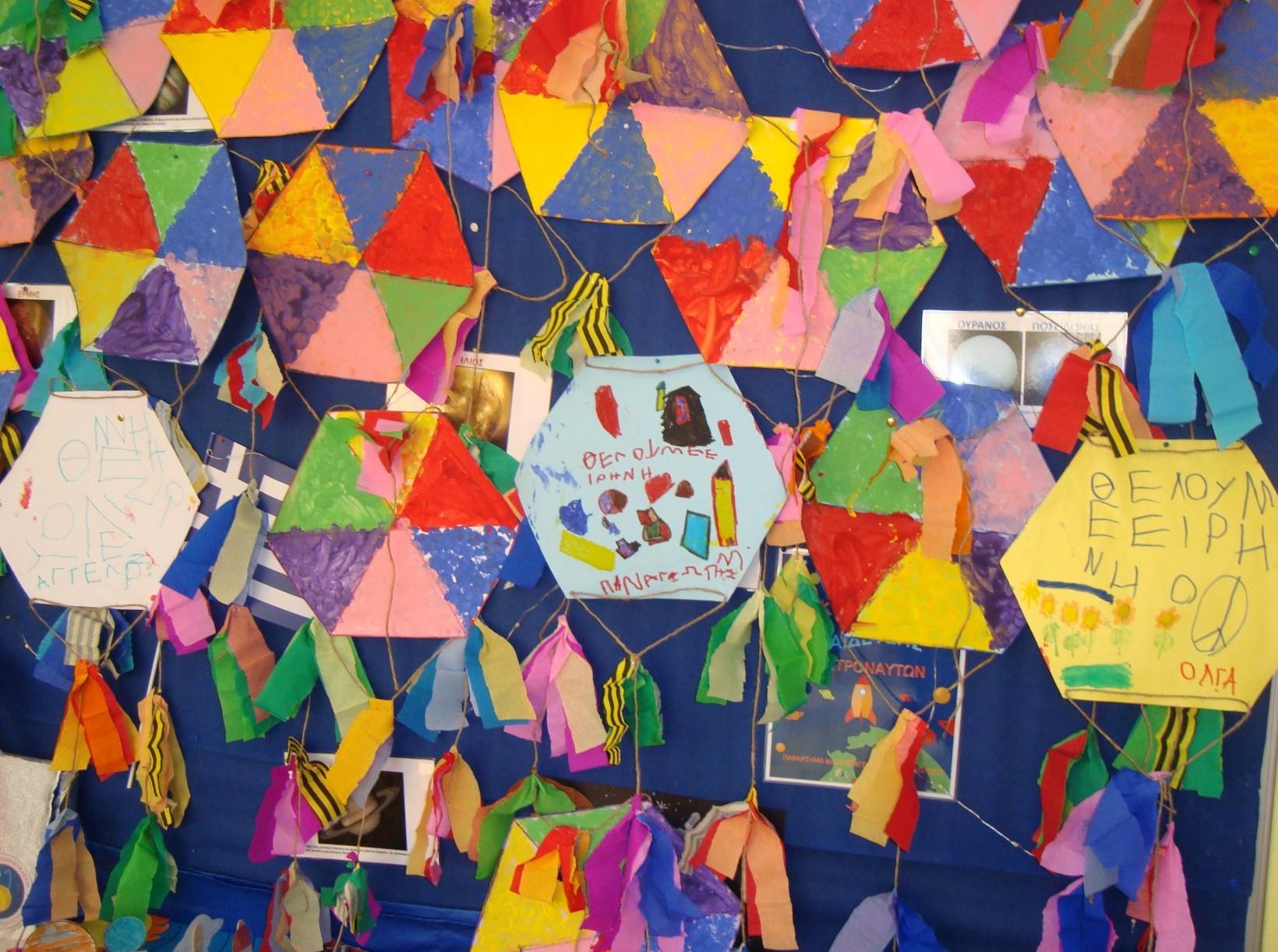 • “Το τραπέζι της Καθαράς Δευτέρας ” του ζωγράφου Σπύρου Βασιλείου. Οι μαθητές μας παρατήρησαν το έργο του ζωγράφου, εντόπισαν, εκφράστηκαν ανακαλώντας τα δικά τους βιώματα και δημιούργησαν τα δικά τους έργα. Στον πίνακα βλέπουμε ένα σιδερένιο τρίποδο τραπεζάκι καφενείου σε κάποια ταράτσα που κοιτά προς τον Υμηττό. Είμαστε στην ώρα του μεσημεριού, όπως μαρτυρά το ψάθινο καπέλο αλλά και ο χαρταετός που κρέμεται στα σύρματα, μετά το πρωινό πέταγμα. Κυρίως το δείχνουν όσα υπάρχουν πάνω στο τραπέζι: λαγάνα, ελιές, χαλβάς, ταραμάς, μια πράσινη σαλάτα με μαρούλι και φρέσκο κρεμμυδάκι, μια πήλινη κανάτα με ρετσίνα και δύο ποτήρια. Στα πόδια του τραπεζιού αφημένα πρόχειρα είναι ένας χαρταετός, ένα καπέλο και μια μαγκούρα. Κάτω δεξιά, στον τοίχο, μια παιδική ζωγραφιά μέσα στην οποία είναι η υπογραφή του δημιουργού με την ημερομηνία του έργου.