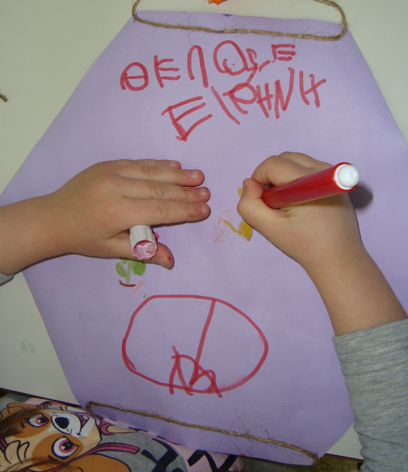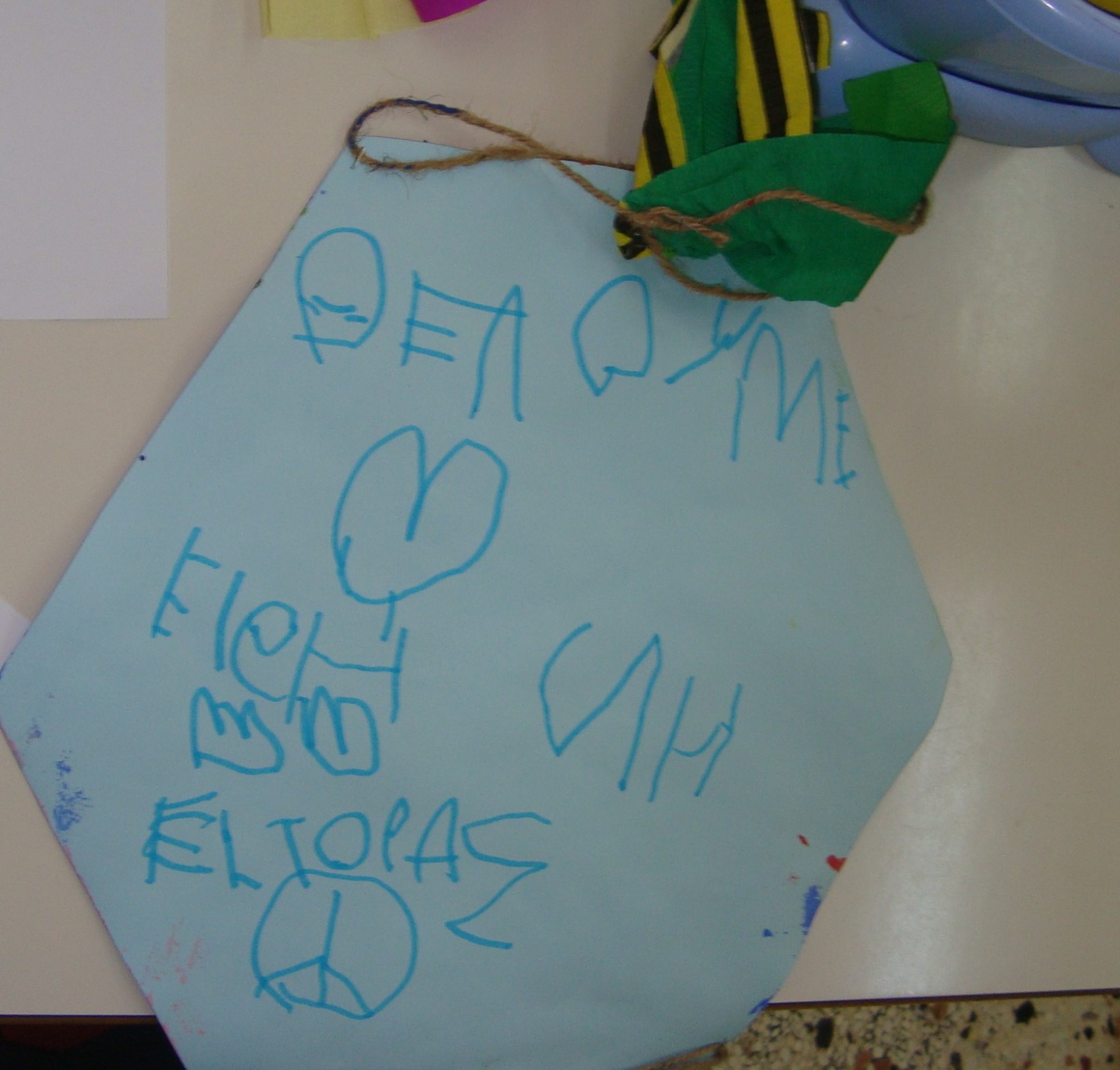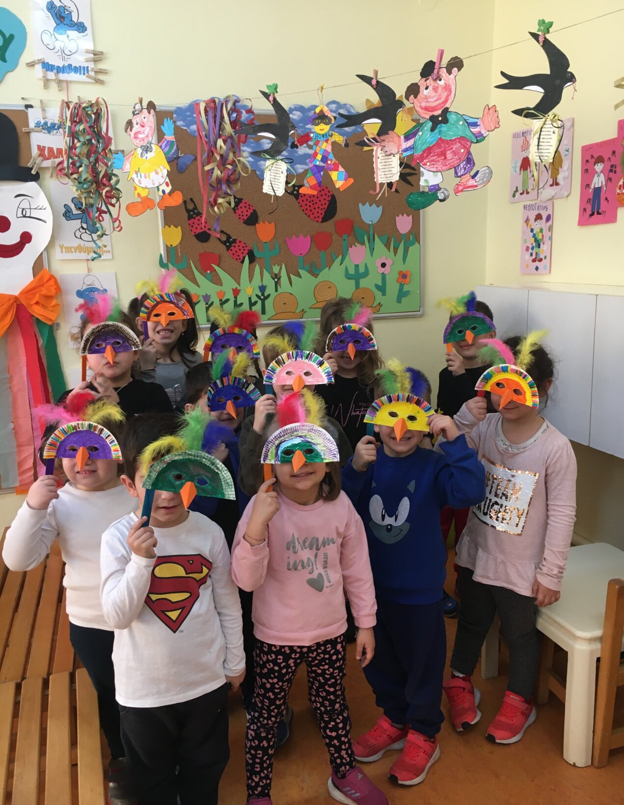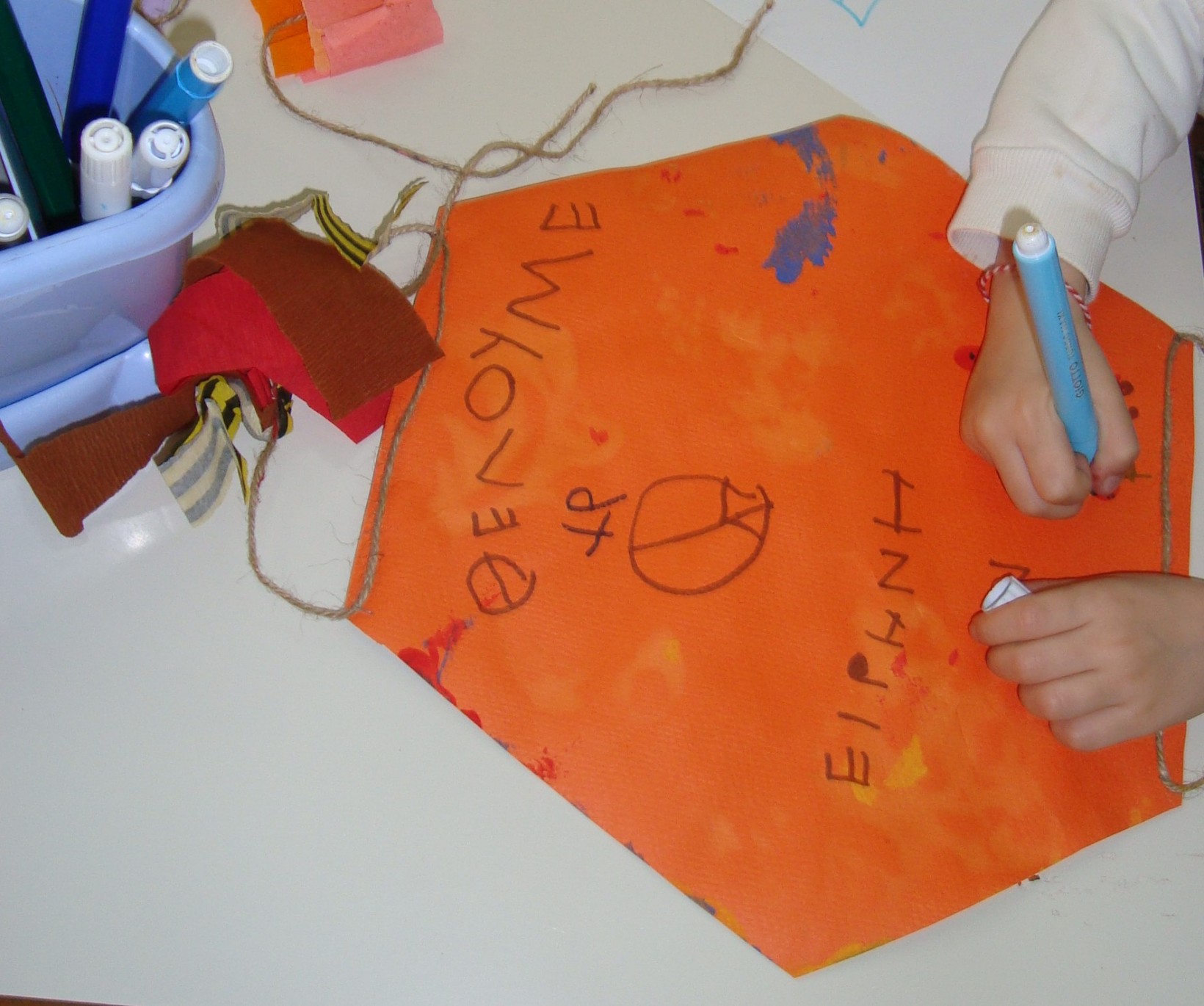 • “Το τραπέζι της Καθαράς Δευτέρας ” του ζωγράφου Σπύρου Βασιλείου. Οι μαθητές μας παρατήρησαν το έργο του ζωγράφου, εντόπισαν, εκφράστηκαν ανακαλώντας τα δικά τους βιώματα και δημιούργησαν τα δικά τους έργα. Στον πίνακα βλέπουμε ένα σιδερένιο τρίποδο τραπεζάκι καφενείου σε κάποια ταράτσα που κοιτά προς τον Υμηττό. Είμαστε στην ώρα του μεσημεριού, όπως μαρτυρά το ψάθινο καπέλο αλλά και ο χαρταετός που κρέμεται στα σύρματα, μετά το πρωινό πέταγμα. Κυρίως το δείχνουν όσα υπάρχουν πάνω στο τραπέζι: λαγάνα, ελιές, χαλβάς, ταραμάς, μια πράσινη σαλάτα με μαρούλι και φρέσκο κρεμμυδάκι, μια πήλινη κανάτα με ρετσίνα και δύο ποτήρια. Στα πόδια του τραπεζιού αφημένα πρόχειρα είναι ένας χαρταετός, ένα καπέλο και μια μαγκούρα. Κάτω δεξιά, στον τοίχο, μια παιδική ζωγραφιά μέσα στην οποία είναι η υπογραφή του δημιουργού με την ημερομηνία του έργου.