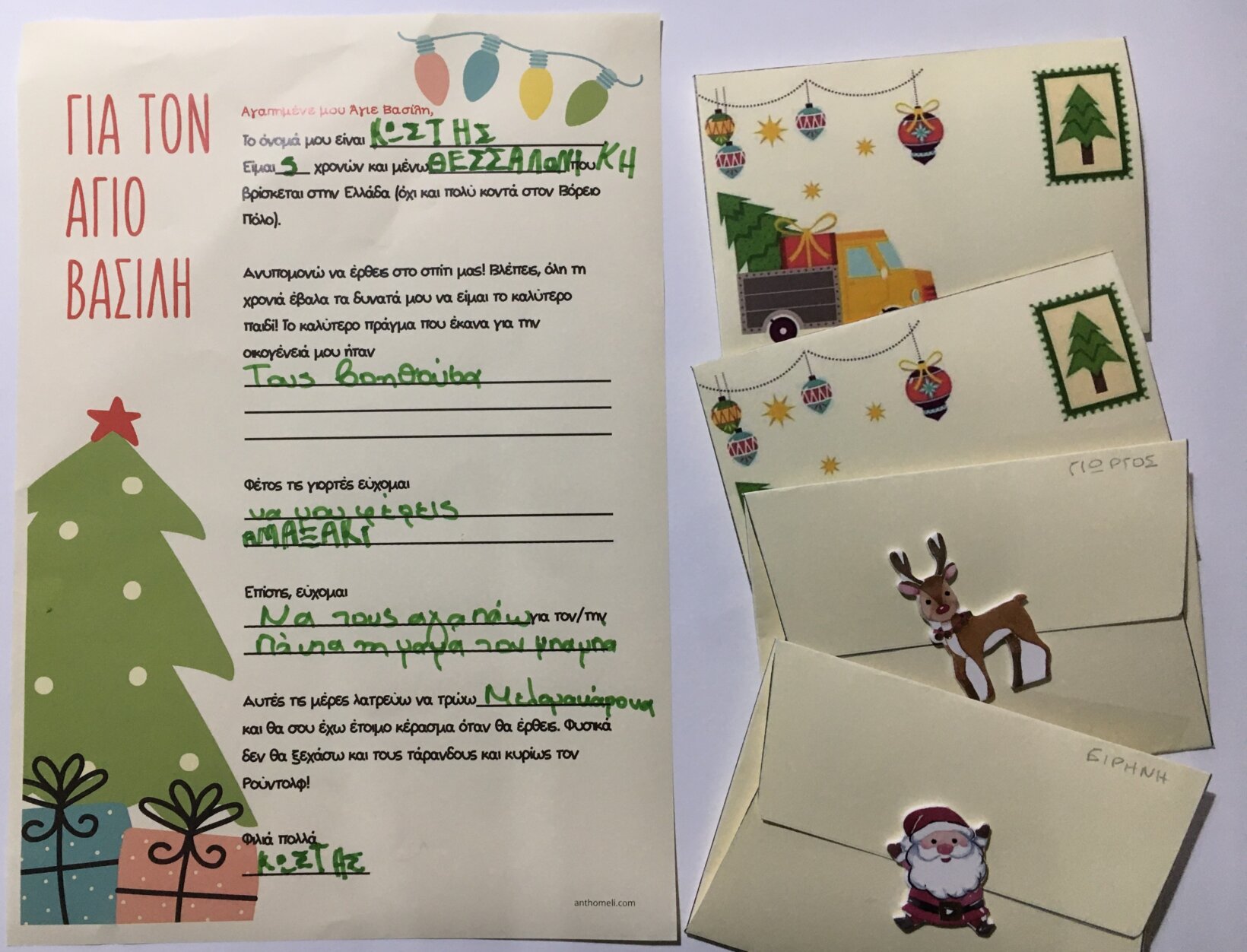 Σκεφτήκαμε να του γράψουμε κι ένα γράμμα για να του δείξουμε την αγάπη μας αλλά και να ζητήσουμε το δωράκι μας.