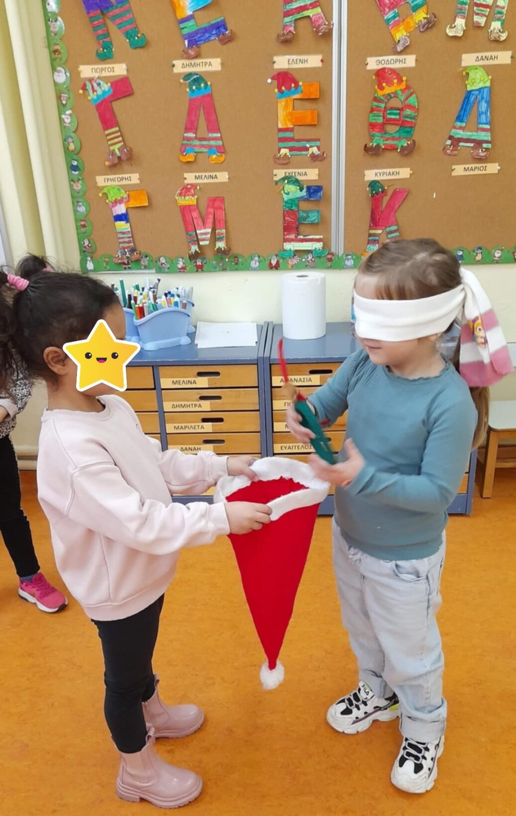 Πολλά χριστουγεννιάτικα παιχνίδια, όπως: “Βρες τί κρύβει ο σκούφος του Αη Βασίλη”.