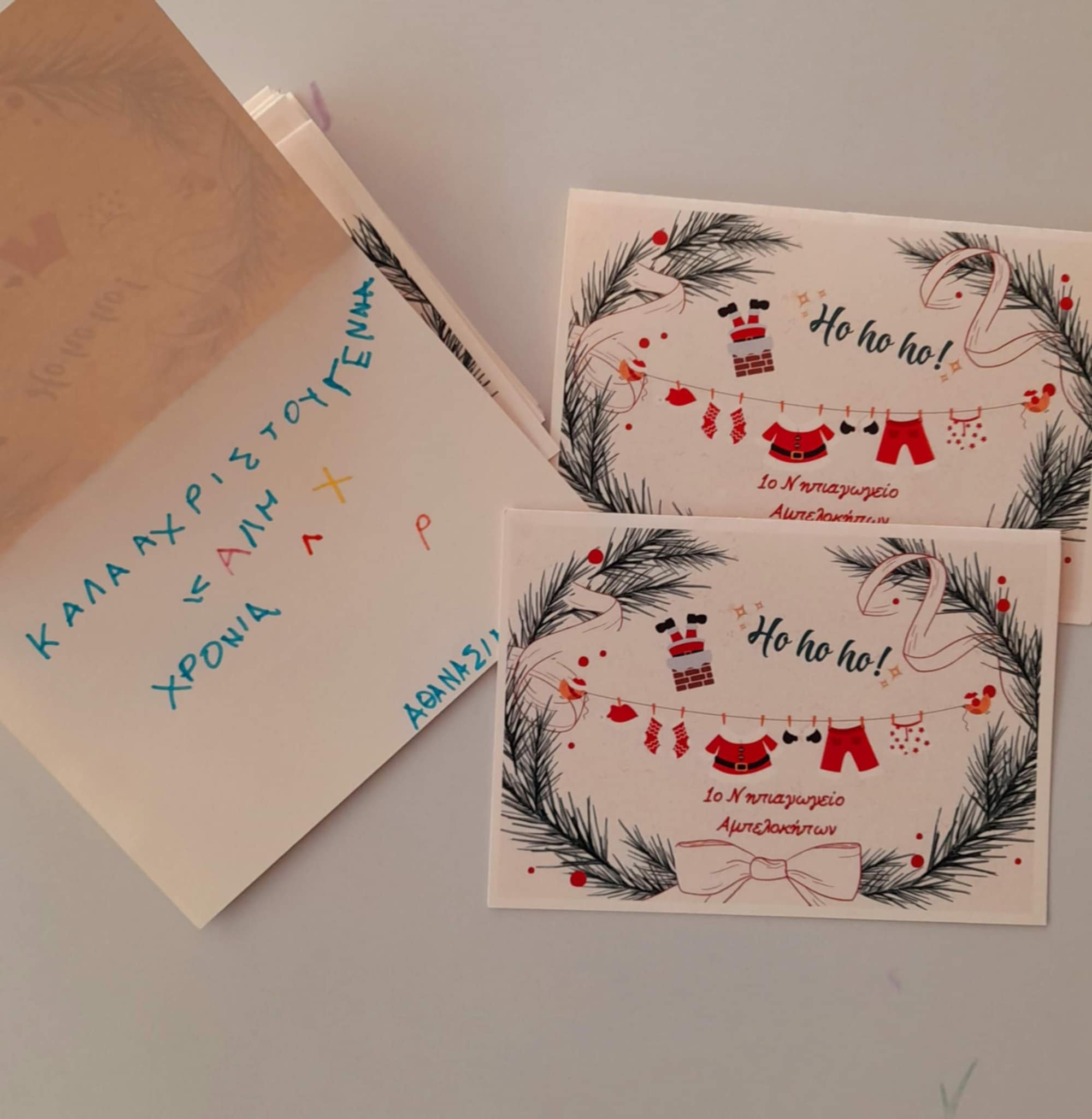 Τέλος οι χριστουγεννιάτικες κάρτες μας γραμμένες με ευχές από τα παιδιά.