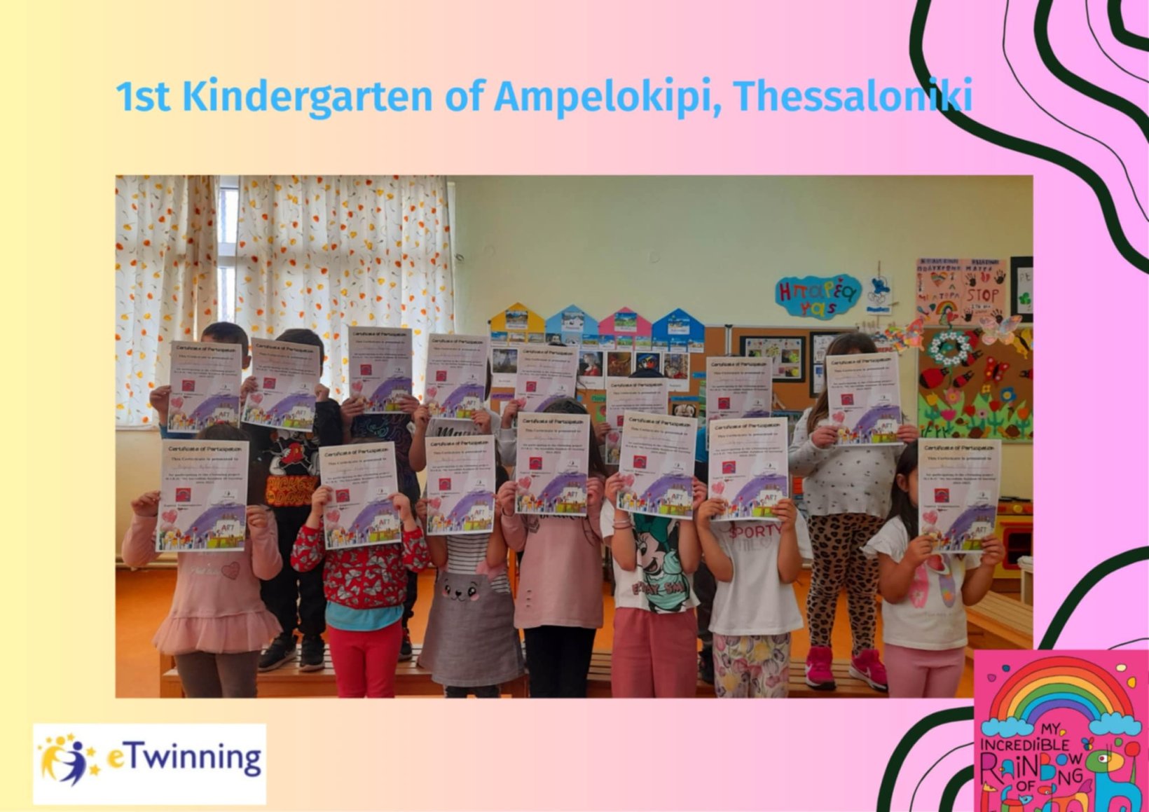 Οι λέξεις που είναι γραμμένες πάνω της προέρχονται από τα παιδιά των χωρών που συνεργαζόμαστε στο πρόγραμμα και αφορούν την συνεργασία. Τα έργα θα εκτεθούν σε επτά ευρωπαϊκές χώρες: Ελλάδα, Τουρκία, Ρουμανία, Βουλγαρία, Λετονία, Λιθουανία και Κροατία, αναδεικνύοντας τη δύναμη της παιδικής δημιουργικότητας ως κοινή γλώσσα πέρα από σύνορα.