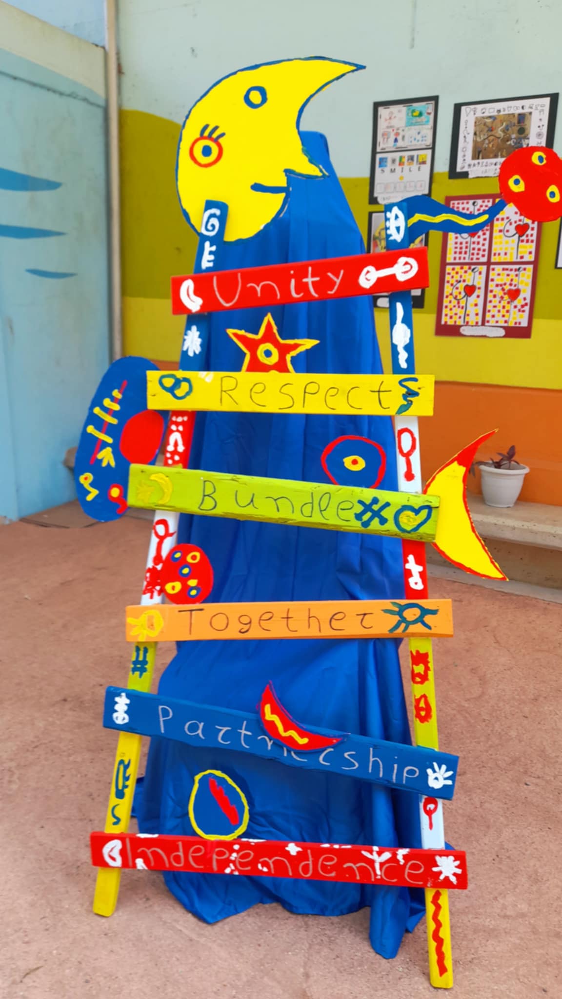 Στόχος μας ήταν η δημιουργία ενός γλυπτού που θα συνέβαλλε ουσιαστικά στην διάδοση του προγράμματος μας στην ευρύτερη κοινότητα, να σταθεί σαν έργο τέχνης από τους μικρούς μας δημιουργούς και τα χεράκια τους, να προκαλέσει συναισθήματα, όνειρα για ταξίδια, φανταστικά παιχνίδια. Επιδίωξη μας δεν ήταν απλώς να στολίσουμε μια σκάλα — ήταν να ανεβούμε μαζί της. Σκαλί σκαλί, αφήσαμε τα παιδιά να περπατήσουν στα χρώματα της φαντασίας τους, να αποτυπώσουν χαμόγελα, σχήματα και σκέψεις, όπως θα έκανε κι ο Μiro. Θέλαμε να δώσουμε μορφή στο άυλο, φωνή στο χρώμα και ρυθμό στη γραμμή. Να δείξουμε πως η τέχνη δεν χρειάζεται καμβά – αρκεί μια σκάλα και μια καρδιά γεμάτη έμπνευση. Έτσι, κάθε σκαλοπάτι έγινε και μια μικρή ιστορία, ένας σταθμός στο ταξίδι της δημιουργίας, μια υπενθύμιση πως όταν τα παιδιά δημιουργούν, ο κόσμος γίνεται λίγο πιο όμορφος.