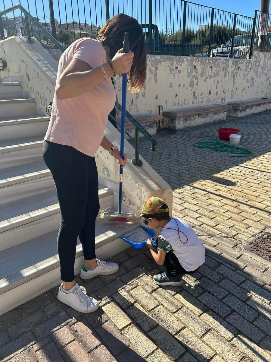 Με σπάτουλες στα χέρια ,πινέλα και χρώματα ,γονείς ,παιδιά και εκπαιδευτικοί ,καθαρίσαμε και ομορφύναμε τον συγκεκριμένο χώρο.