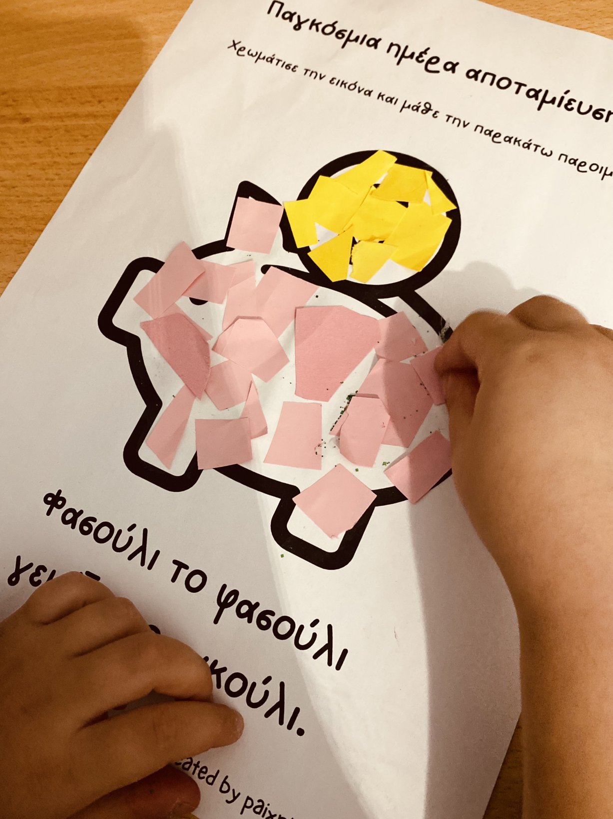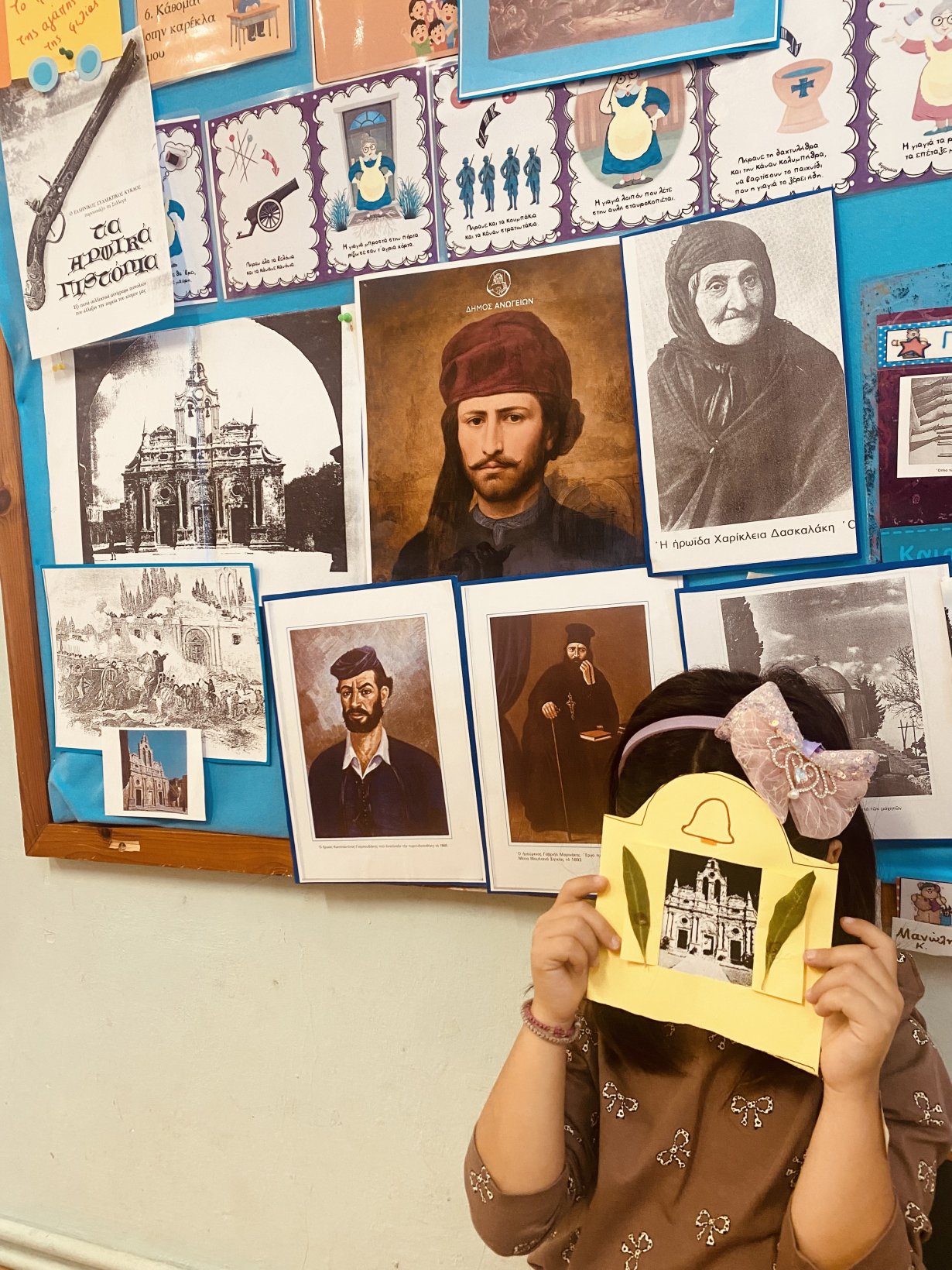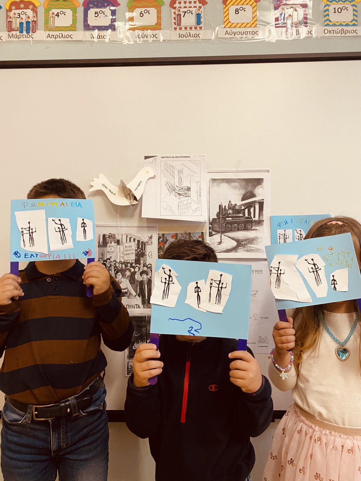 Στο δικό μας εργαστήριο, όπου είχαμε τη χαρά να καλέσουμε και τις μαμάδες, γνωρίσαμε πρώτα την ιστορία και το νόημα της ειρεσιώνης. Στη συνέχεια, κάθε μαμά μαζί με το παιδί της διάλεξε καρπούς του φθινοπώρου και έγραψε μια ξεχωριστή ευχή, την οποία τοποθέτησε σε ένα μικρό πουγκί. Έπειτα, τα παιδιά και οι μαμάδες στόλισαν το κλαδί της ελιάς με τα πουγκιά των ευχών και τους φθινοπωρινούς καρπούς που είχαν επιλέξει. Έτσι δημιουργήσαμε τη δική μας ειρεσιώνη, σηματοδοτώντας συμβολικά τη λήξη του φθινοπώρου και υποδεχόμενοι με χαρά την επόμενη εποχή.