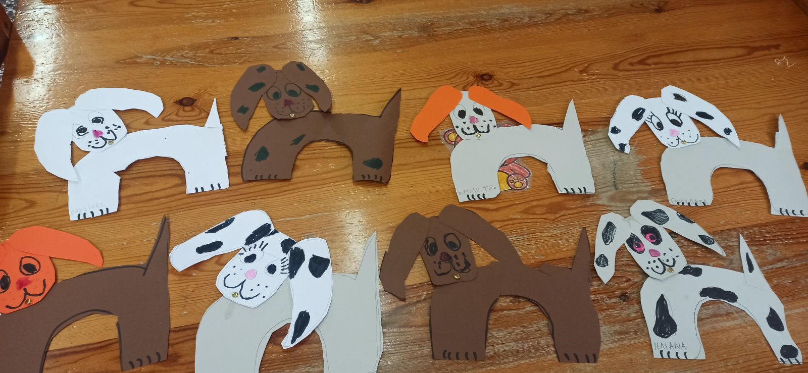Τα παιδιά στο πλαίσιο του 3ου Εργαστηρίου Δεξιοτήτων ” Τα ζώα ζώα που ζουν κοντά μας”ασχολήθηκαν με τα κατοικίδια ζώα, τα παραγωγικά ζώα που ζουν στη φάρμα, τα δεσποζόμενα και τα αδέσποτα ζώα. Έκαναν ομαδοποιήσεις, συγκρίσεις, δημιούργησαν σύνολα και υποσύνολα ζώων. Επέλεξαν ένα λούτρινο σκυλάκι της τάξης να του δώσουν το όνομα ΛΕΥΚΗ και να το υιοθετήσουν όπως θα έκαναν εάν ήταν αληθινό. Εξέφρασαν τα συναισθήματα τους προς τα κατοικίδια με αγκαλιές, χάδια κλπ. Είδαν πίνακες ζωγραφικής με απεικονιζόμενα κατοικίδια ζώα και επέλεξαν τον ζωγραφικό πίνακα “Ο ΣΚΥΛΟΣ ΚΑΙ Η ΑΝΝΑ” για να το επεξεργαστούν. Ψήφισαν το σκύλο ως το αγαπημένο τους ζώο και κατασκεύασαν σκυλάκια από χαρτόνι και φαντασία. Έμαθαν παροιμίες με ζώα και άκουσαν και επεξεργάστηκαν το ποίημα του Ι. Πολίτη ” ΤΑ ΖΩΑ”.