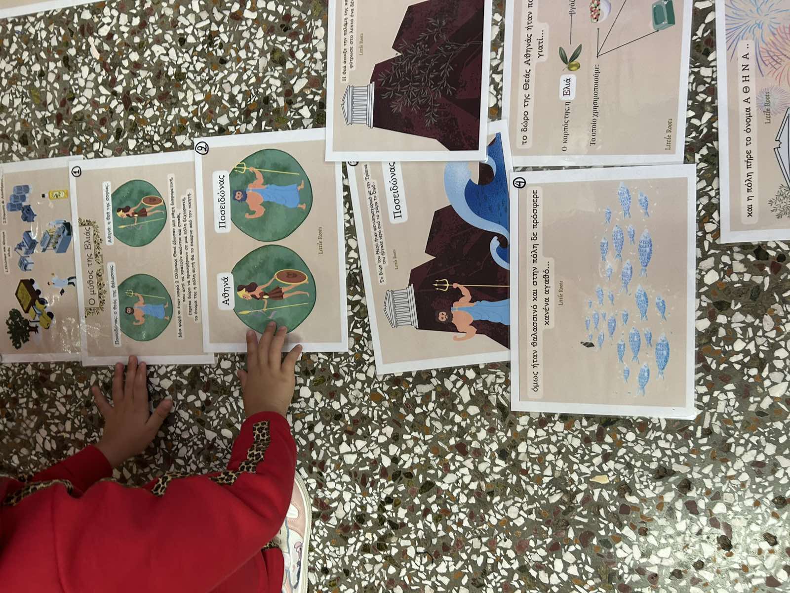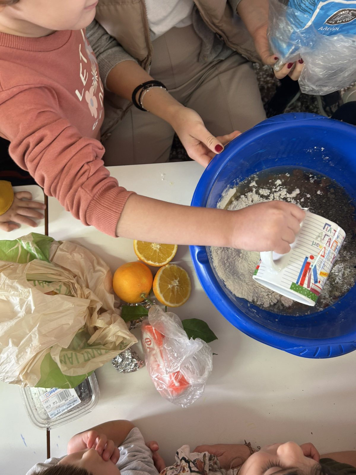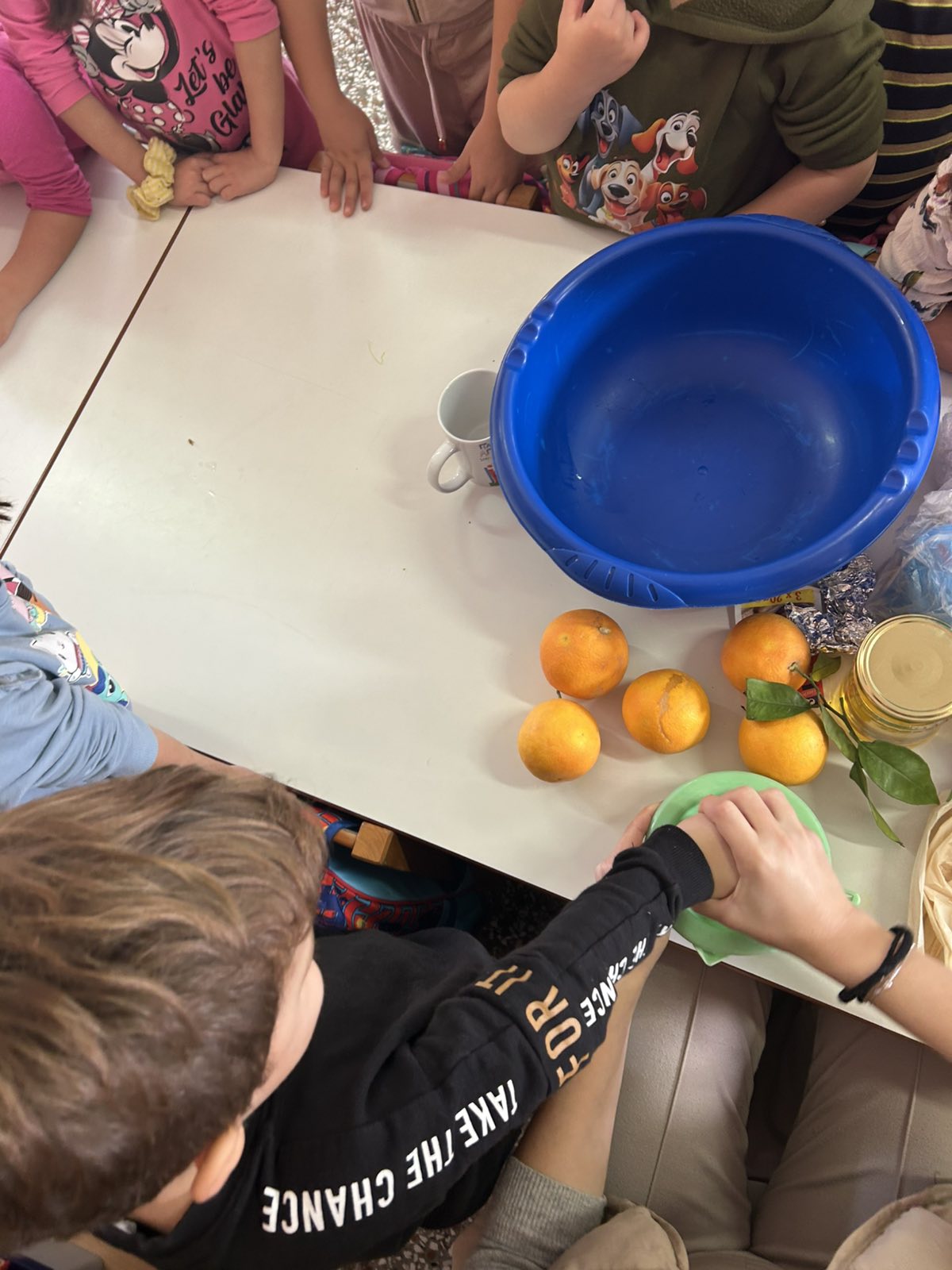 Παρατηρήσαμε και αναλύσαμε το “Λιομάζωμα” του Θεόφιλου και συνδέσαμε την ελιά με τη μυθολογία και μύθο της Αθηνάς και του Ποσειδώνα και τη διαμάχη τους για το όνομα της Αθήνας. Τέλος, μιλήσαμε για τη μεγάλη σημασία του ελαιόλαδου στη διατροφή μας και ζυμώσαμε υγιεινά ελιοπιτάκια.