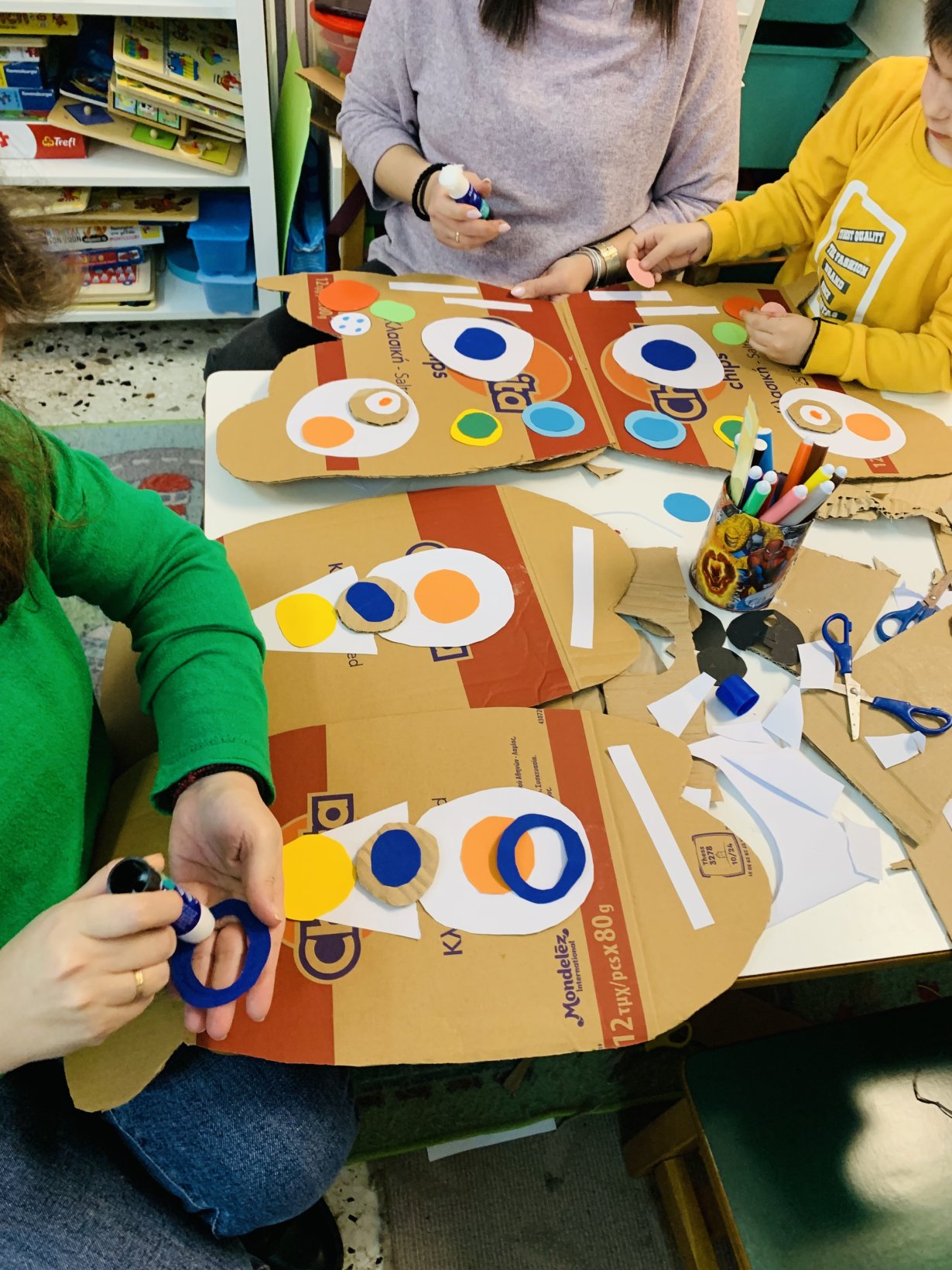 Ένα βιωματικό εργαστήριο για γονείς και παιδιά στήθηκε στο χώρο του σχολείου μας . Υπό την καθοδήγηση της Σταυρούλας Μαστρογιάννη , υπεύθυνη του ΚΟΥΚΛΟΠΕΔΙΟ , που εδρεύει στο ΠΟΡΦΥΡΟΓΕΝΕΙΟ ΙΔΡΥΜΑ ΑΓΡΙΑΣ , και απογευματινές ώρες , εκτός διδακτικού ωραρίου , οι γονείς και τα παιδιά είχαν την ευκαιρία να δημιουργήσουν μαζί γιγαντόκουκλα ( φτερά πεταλούδας ) , στην οποία στη συνέχεια θα μπει ένας μηχανισμός ώστε να επιτρέπει στα φτερά να ανοιγοκλείνουν χειροκίνητα . Οι γονείς ανταποκρίθηκαν άμεσα στο κάλεσμα του σχολείου για να συνδημιουργήσουν παρέα με τα παιδιά τους μια κατασκευή από άχρηστα χαρτόκουτα με την οποία αργότερα θα συμμετέχουν σε μια παρέλαση στον παραλιακό δρόμο της Αγριάς. Το σχολείο μας , ως ένα σχολείο ανοιχτό στην κοινωνία , επιδιώκει να υλοποιεί τέτοιες δράσεις , οι οποίες φέρνουν τους γονείς πιο κοντά στην εκπαιδευτική διαδικασία , αλλά και να συνεργάζεται με φορείς , ενώ παράλληλα να προάγει θετικές στάσεις ζωής ενεργού πολίτη , όπως αυτή της ανακύκλωσης και της δημιουργίας κατασκευών από άχρηστα υλικά . Η συγκεκριμένη δράση αποτελεί το πρώτο μέρος της συνολικής ιδέας της γιορτής κούκλας με τίτλο ΜΗΝ ΠΕΤΑΣ – ΠΕΤΑ , του ΠΟΡΦΥΡΟΓΕΝΕΙΟΥ ΙΔΡΥΜΑΤΟΣ μέσω της κας Μαστρογιάννη .