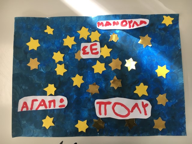 ΓΙΑ ΤΗΝ ΓΙΟΡΤΗ ΤΗΣ ΜΗΤΕΡΑΣ……………… ΜΕΡΟΣ ΤΟΥ ΣΚΗΝΙΚΟΥ ΜΑΣ(ΟΜΑΔΙΚΗ ΕΡΓΑΣΙΑ). ΕΝΑ ΒΡΑΔΥ,ΘΑ ΣΟΥ ΓΡΑΨΩ ΣΤΟΝ ΟΥΡΑΝΟ,ΜΕ ΛΕΞΟΥΛΕΣ ΑΠΟ ΤΑ ΑΣΤΕΡΙΑ ΠΩΣ ΠΟΛΥ ΣΕ ΑΓΑΠΩ! ΚΑΙ ΤΑ ΔΩΡΑΚΙΑ ΠΟΥ ΕΤΟΙΜΑΣΑΜΕ ΓΙΑ ΤΗΝ ΜΑΝΟΥΛΑ ΜΑΣ! ΚΑΙ ΠΑΙΧΝΙΔΙΑ ΜΕ ΣΥΛΛΑΒΕΣ………
