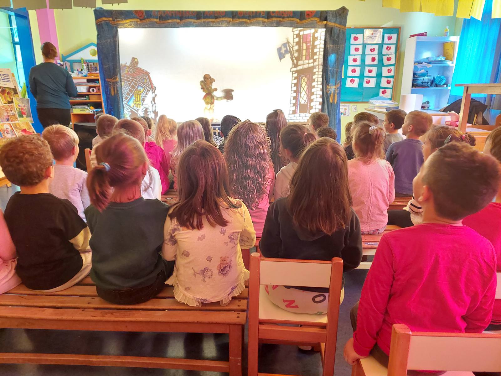 Καθώς προετοιμαζόμασταν για τον εορτασμό της εθνικής επετείου της 28ης Οκτωβρίου, έγιναν συζητήσεις για τα άσχημα που προκαλεί ο πόλεμος, αλλά και για τη σημαντικότητα του πολυπόθητου αγαθού της “ειρήνης”, που εμείς σήμερα έχουμε τη χαρά να απολαμβάνουμε! Στο πλαίσιο αυτό, την Πέμπτη 24 Οκτωβρίου 2024, παρακολουθήσαμε και το Θέατρο Σκιών, με θέμα “Ο Καραγκιόζης και το έπος του ΄40”.