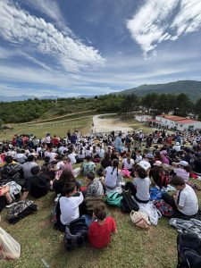 Οι μαθητές ενθουσιάστηκαν από την παρουσίαση της αναβίωσης καθώς και από τα αεροπλάνα που πετούσαν κατά διαστήματα πάνω από τον λόφο που παρακολουθούσαν.