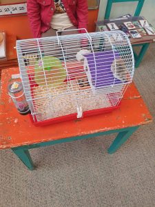 Στη συνέχεια μας επισκέφτηκε στην τάξη του Νηπιαγωγείου μας το κατοικίδιο ενός παιδιού, ο «Χαμστερούλης». Όλα τα παιδιά, αφού το καλωσορίσαμε στην τάξη μας και το παρατηρήσαμε προσεκτικά, θέσαμε τις ερωτήσεις και απορίες μας σχετικά με το πώς γίνεται η φροντίδα του, τι τρώει, με τι παίζει και αν φοβάται . Η συμμαθήτρια μας εξήγησε την καθημερινή φροντίδα του και έπειτα μας αποχαιρέτισε ο «Χαμστερούλης» !