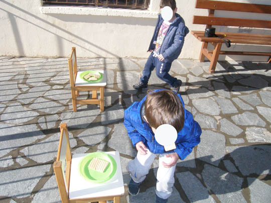 παίξαμε σκυταλοδρομίες με μπισκότα στην αυλή,