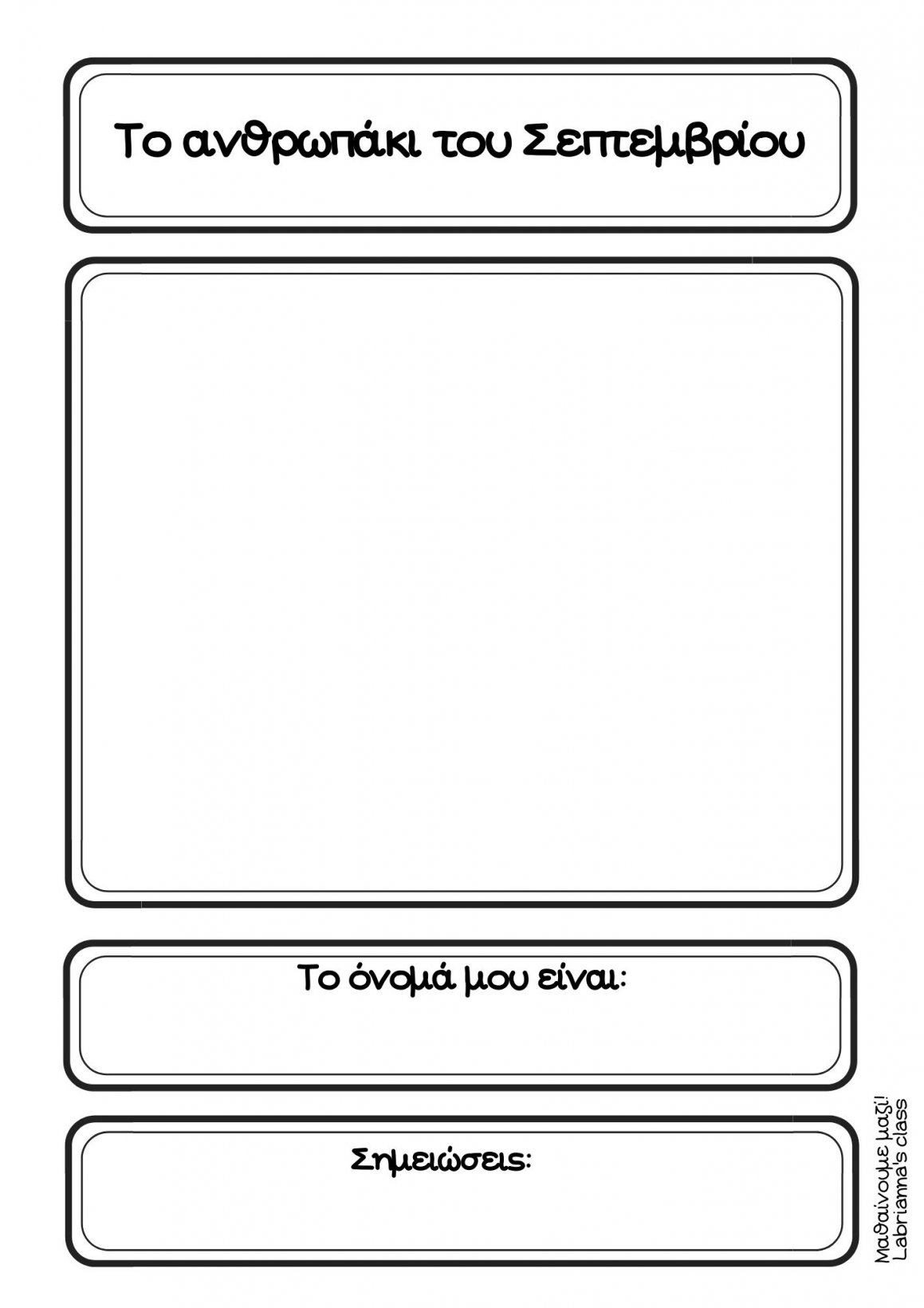 Το ανθρωπάκι του μήνα (δηλαδή πώς δημιουργώ στο χαρτί την ανθρώπινη μορφή μου ),δίνεται κάθε μήνα στα παιδιά και αφού παρατηρήσουν καλά τον εαυτό τους στον καθρέφτη τον ζωγραφίζουν!Δώδεκα μήνες, δώδεκα ανθρωπάκια!