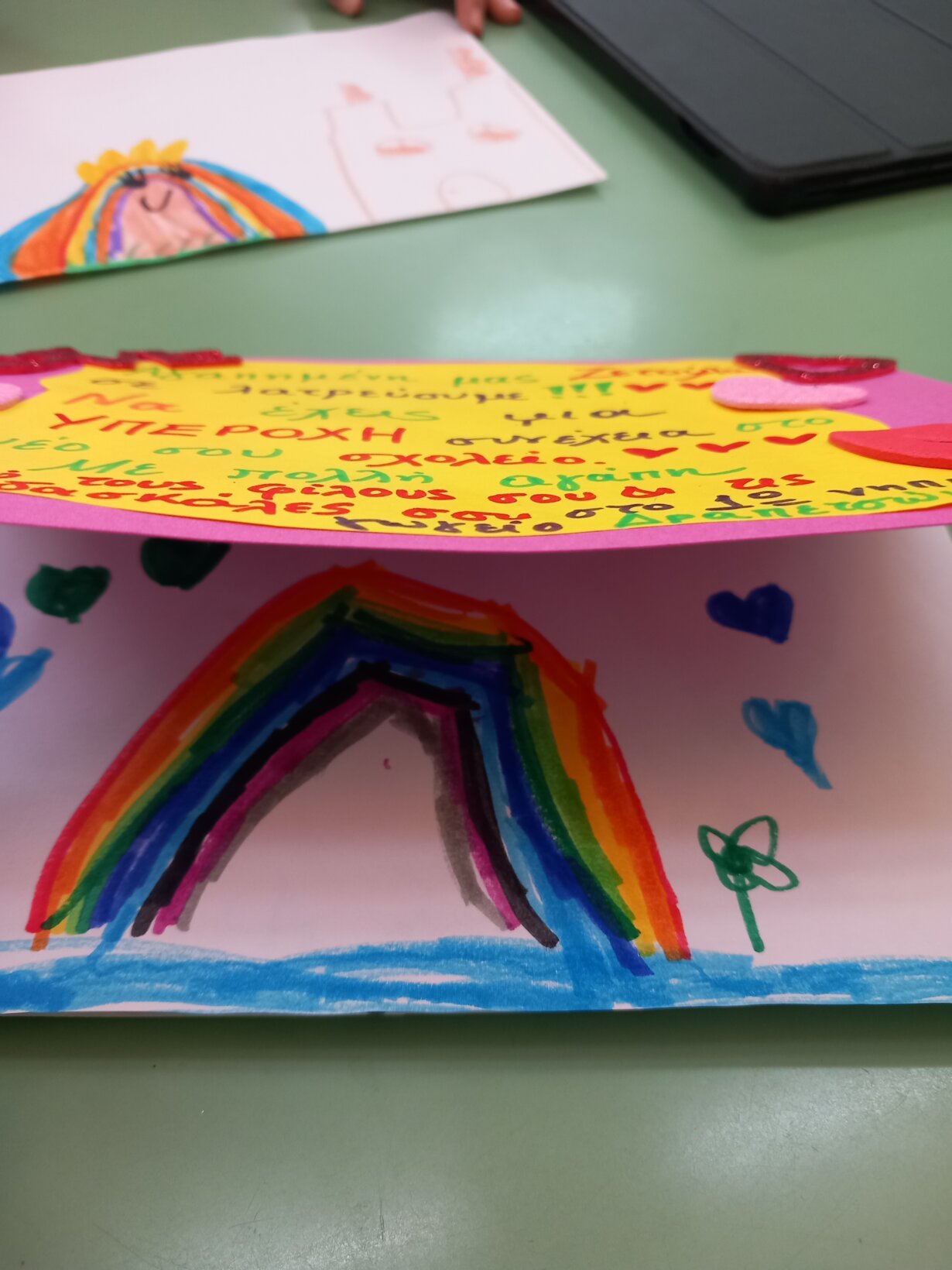 Διατυπώνουμε τις ιδέες μας, τις συζητάμε, τις ζωγραφίζουμε, συνθέτουμε για άλλη μια φορά από το ατομικό στο ομαδικό κι αφού φτιάξουμε την κουρτίνα μας διαπιστώνουμε ότι μόνο να μας ενώσει μπορεί. Παίρνουμε το φίλο από το χέρι και περνάμε κάθε φορά που το θέλουμε ΜΑΖΙ, ευγενικά, κι είμαστε χαρούμενοι και αγαπημένοι. Η κουρτίνα δίνει τη χαρά, μοιράζει την αγάπη και λύνει συγκρούσεις ή κρίσεις που μπορεί να προκύψουν στην ομάδα. Μας θυμίζει ότι αυτά που μας ενώνουν είναι πιο πολλά από αυτά που θα μπορούσαν ίσως να μας χωρίσουν. Η αγάπη, ο σεβασμός και η ενότητα θα πρέπει να είναι οι οδηγοί μας!