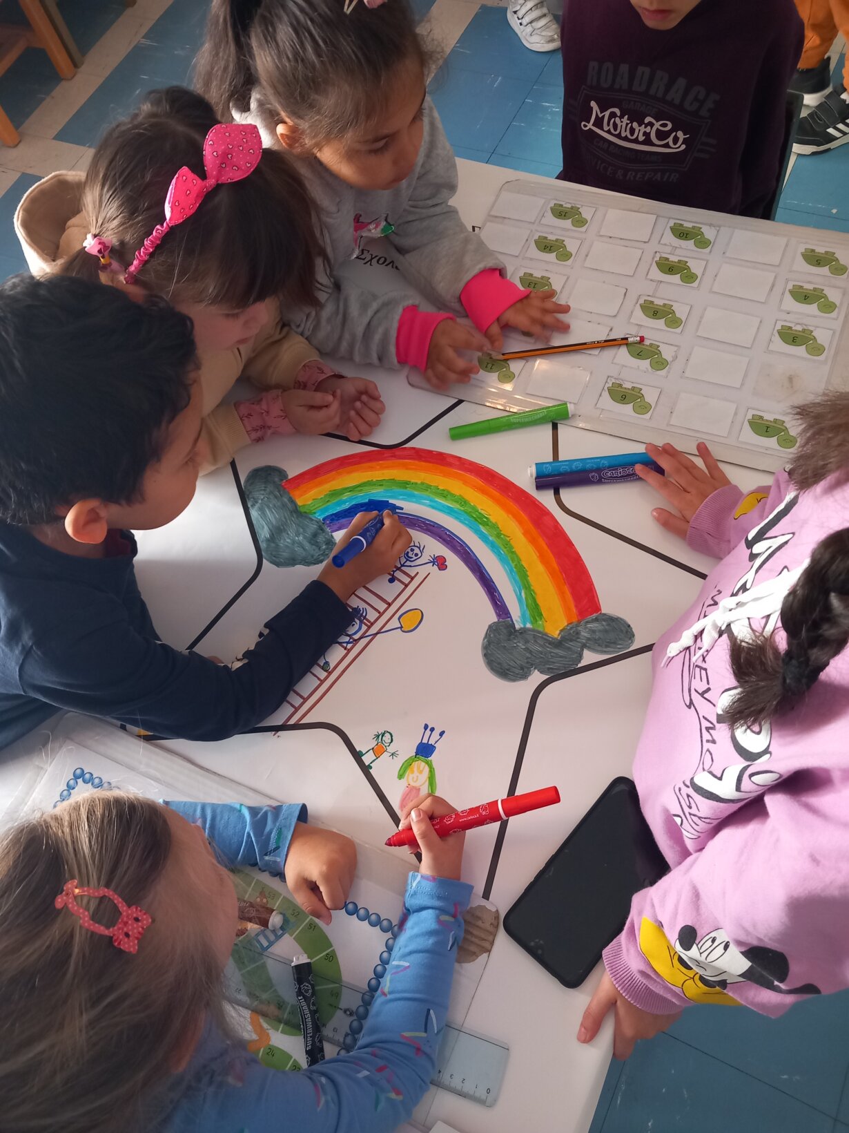Σε ένα χαρτονάκι ζωγραφίζουμε τους φίλους μας κι εμάς, τους παρουσιάζουμε στην ολομέλεια, κάθε χαρτάκι γίνεται κρίκος της μεγάλης αλυσίδας της φιλίας. Με ευγένεια κι αγάπη χορεύουμε την αλυσίδα με τον φίλο ή την φίλη μας ακούγοντας αγαπημένες μουσικές… Μαζί είμαστε πάντα πιο δυνατοί, απολαμβάνουμε μια εμπειρία από κοινού βρίσκοντας τρόπους συνεργασίας.