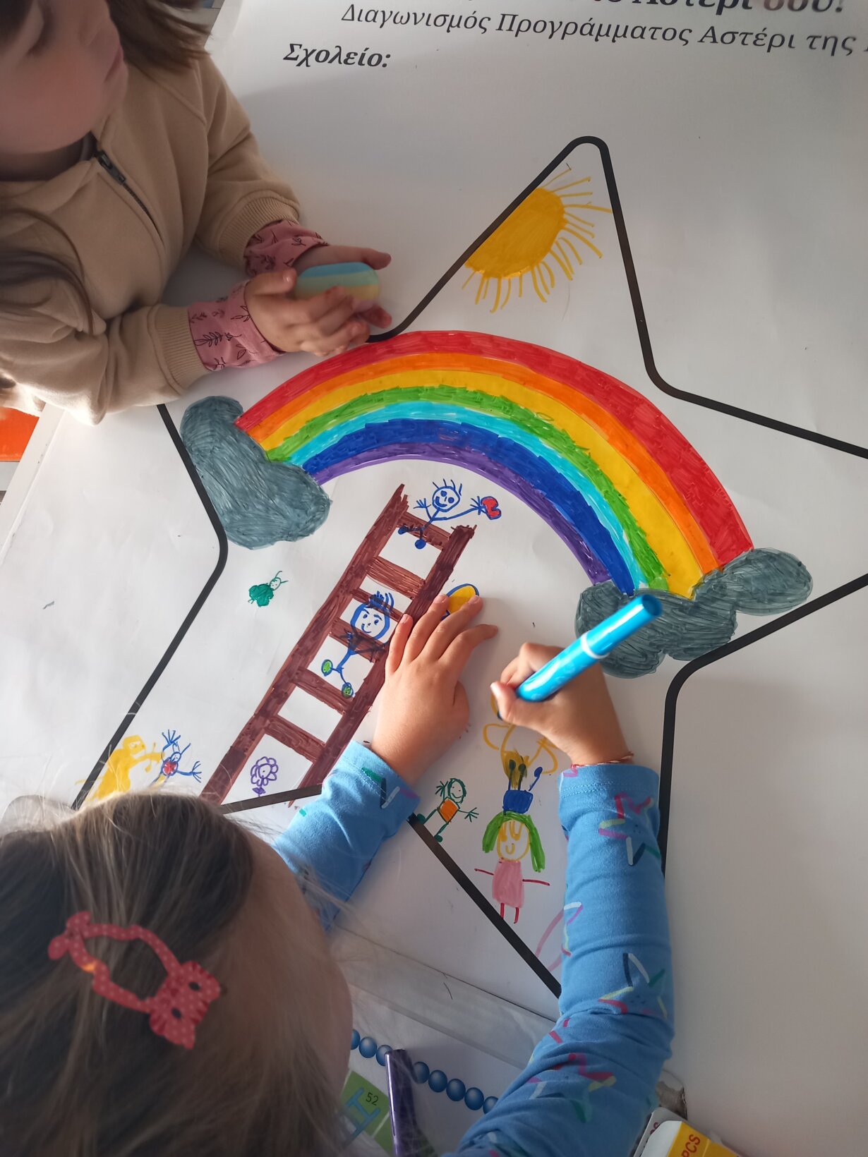 Χορεύουμε με τους φίλους μας σε ζευγάρια που εναλλάσσονται, με το ομώνυμο τραγούδι του Αλκίνοου Ιωαννίδη και του Τζίμη Πανούση. Κρατάμε το φίλο από το χέρι κάθε φορά, τον παρατηρούμε κι εκείνος εμάς, μιλάμε, χορεύουμε, τραγουδάμε, αγκαλιαζόμαστε, γνωριζόμαστε. ΜΑΖΙ δύο φίλοι φτιάχνουμε μια ζωγραφιά, την παρουσιάζουμε στην ολομέλεια και δίνουμε έναν τίτλο στο έργο τέχνης μας από κοινού!
