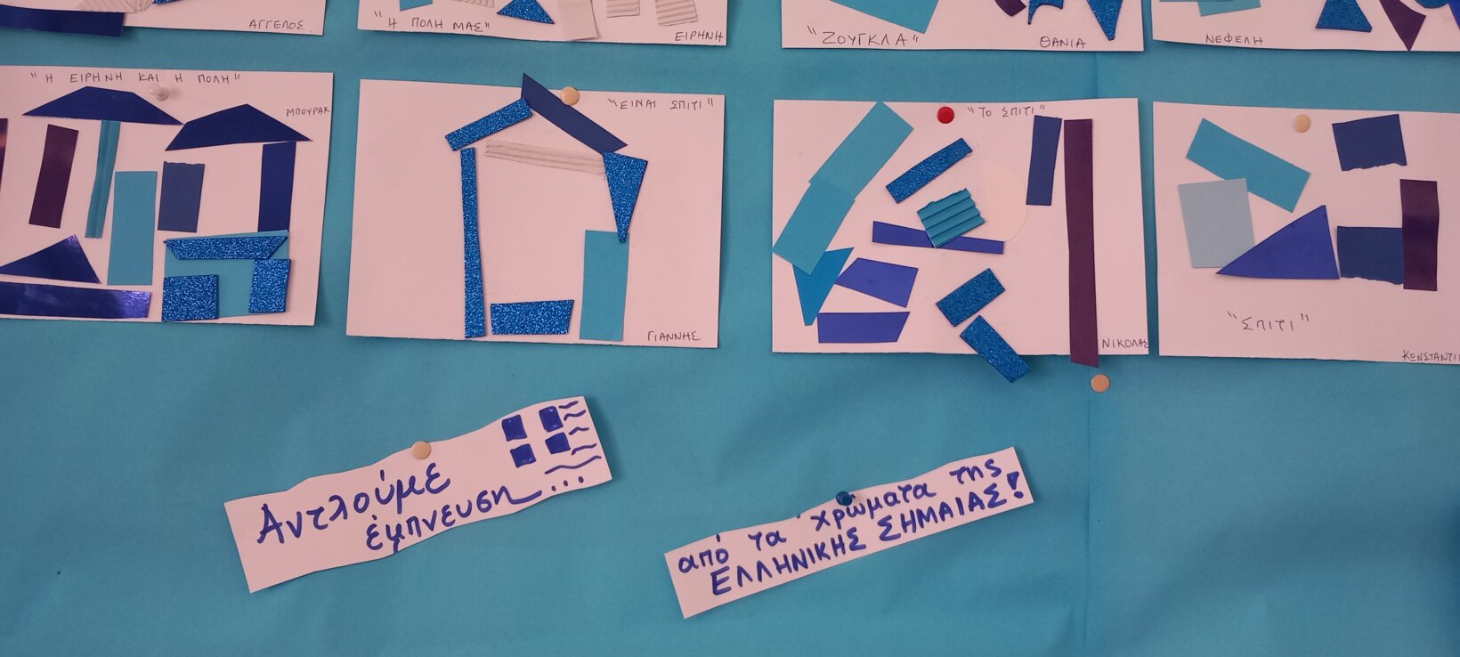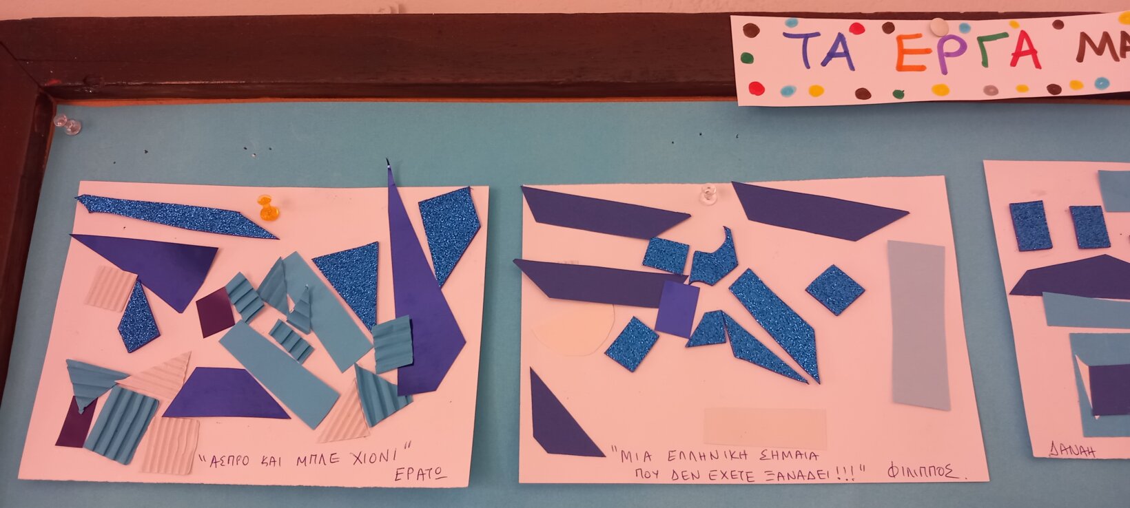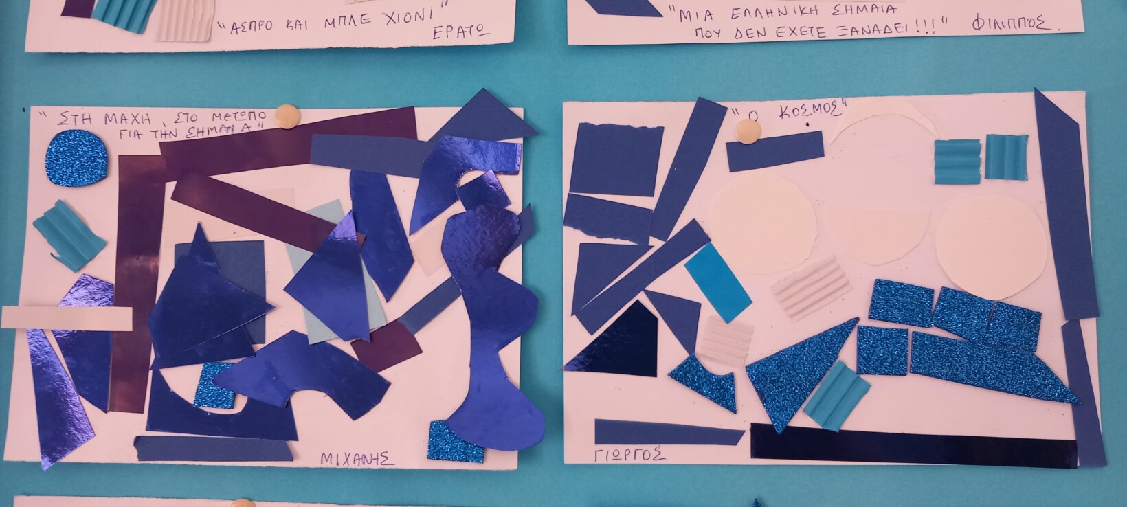 Άσπρο γαλάζιο… …Σωστή ζωγραφιά! Σαν του ουρανού το χρώμα… Αντλούμε έμπνευση από τα χρώματα της ελληνικής σημαίας, δημιουργούμε πρωτότυπα έργα και τους δίνουμε τον δικό μας τίτλο!