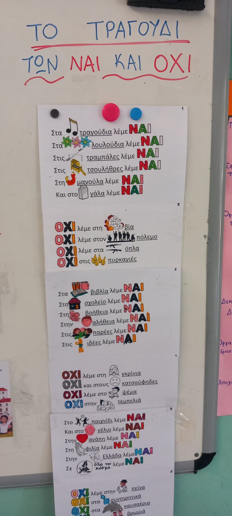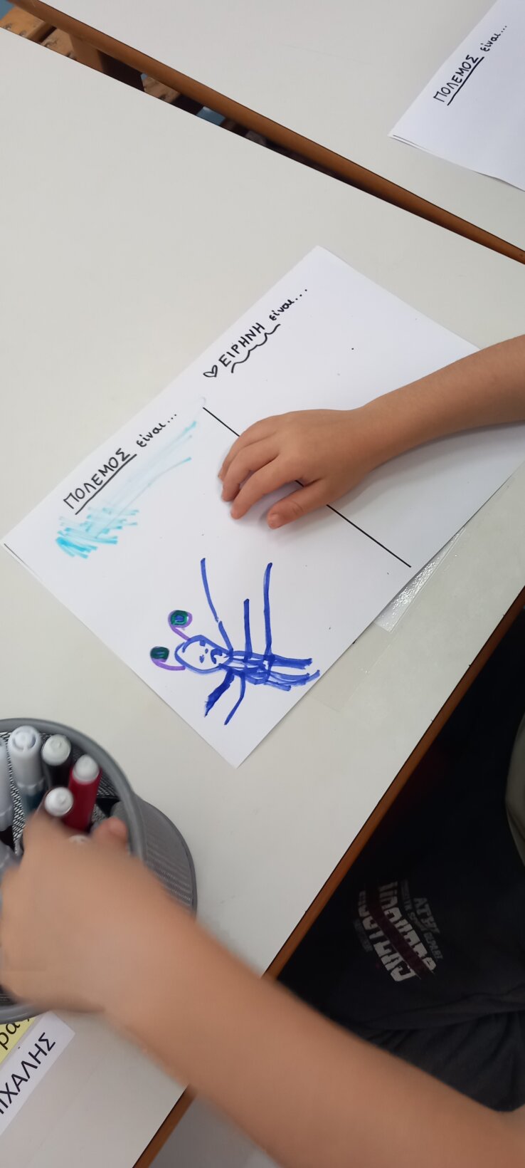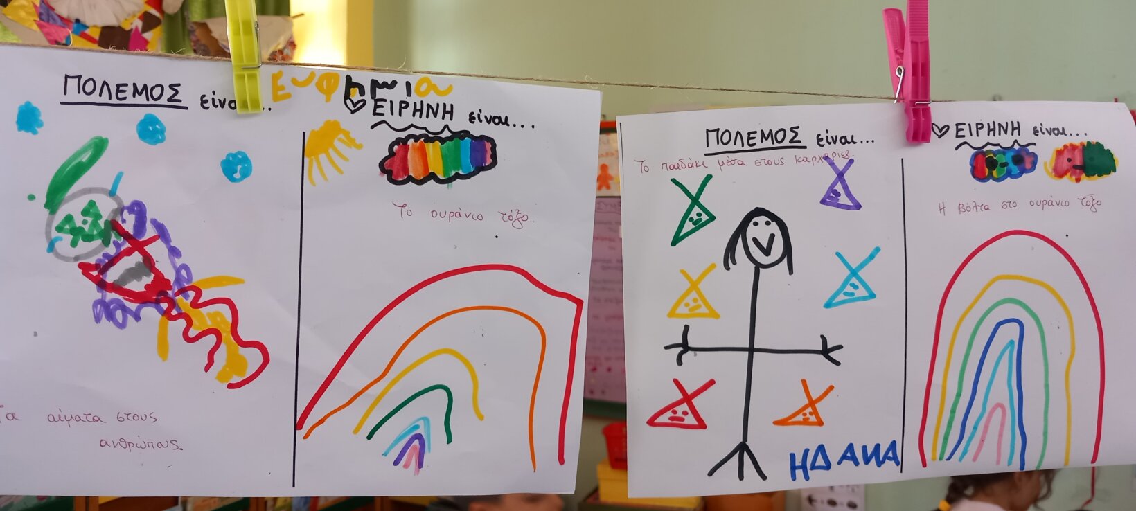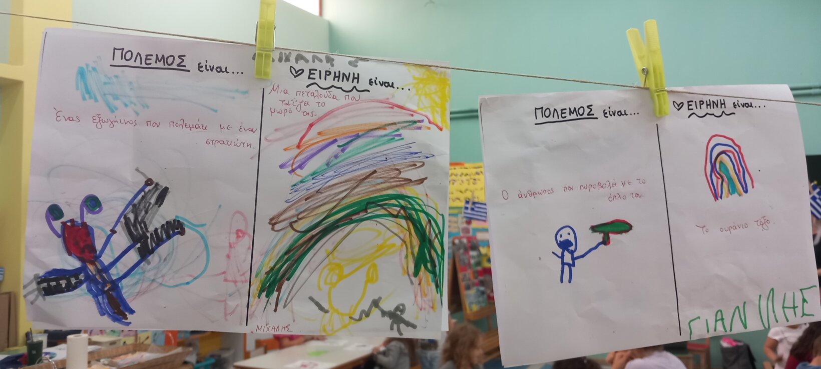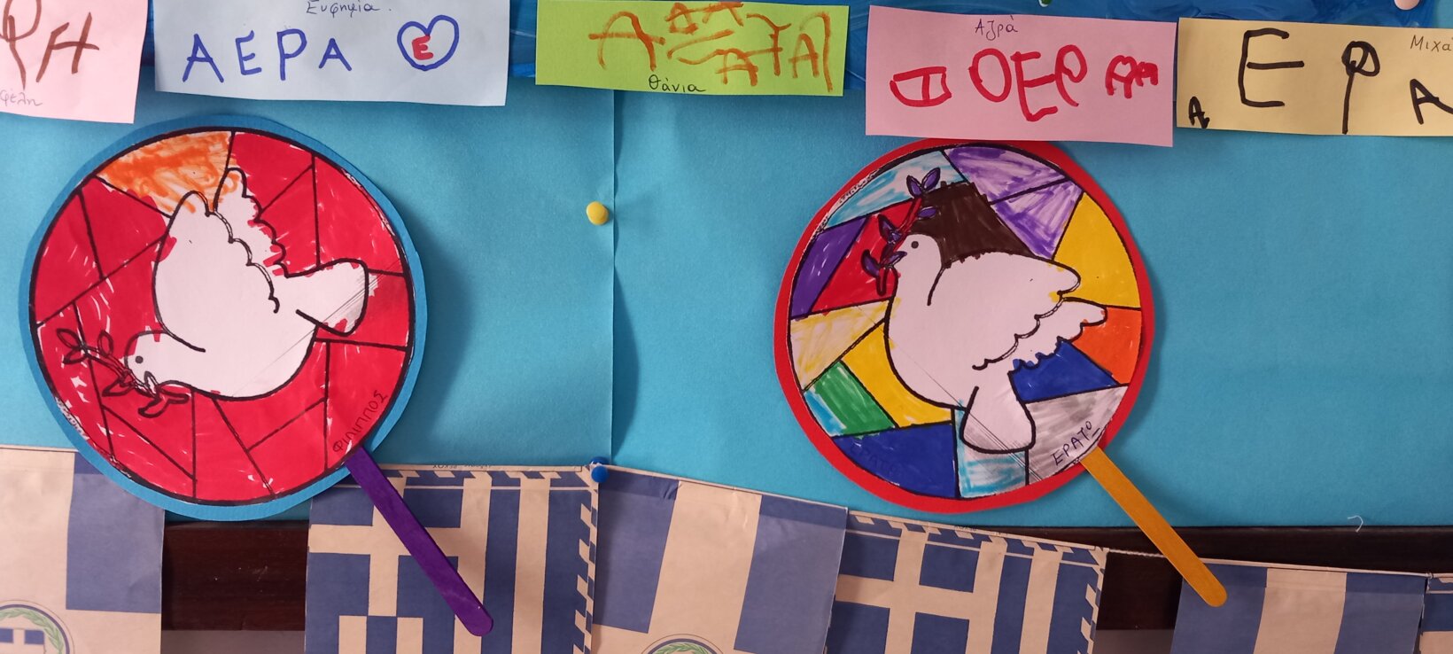 Πόλεμος και ειρήνη! Ιστορίες που διαβάσαμε… Οι ιδέες μας… Τι είναι ο πόλεμος και τι η ειρηνη; Το τραγούδι των ναι και όχι… Τα δικά μας ναι… Το ΟΧΙ το ηρωικό… Ένα σύμβολο για την ειρήνη…
