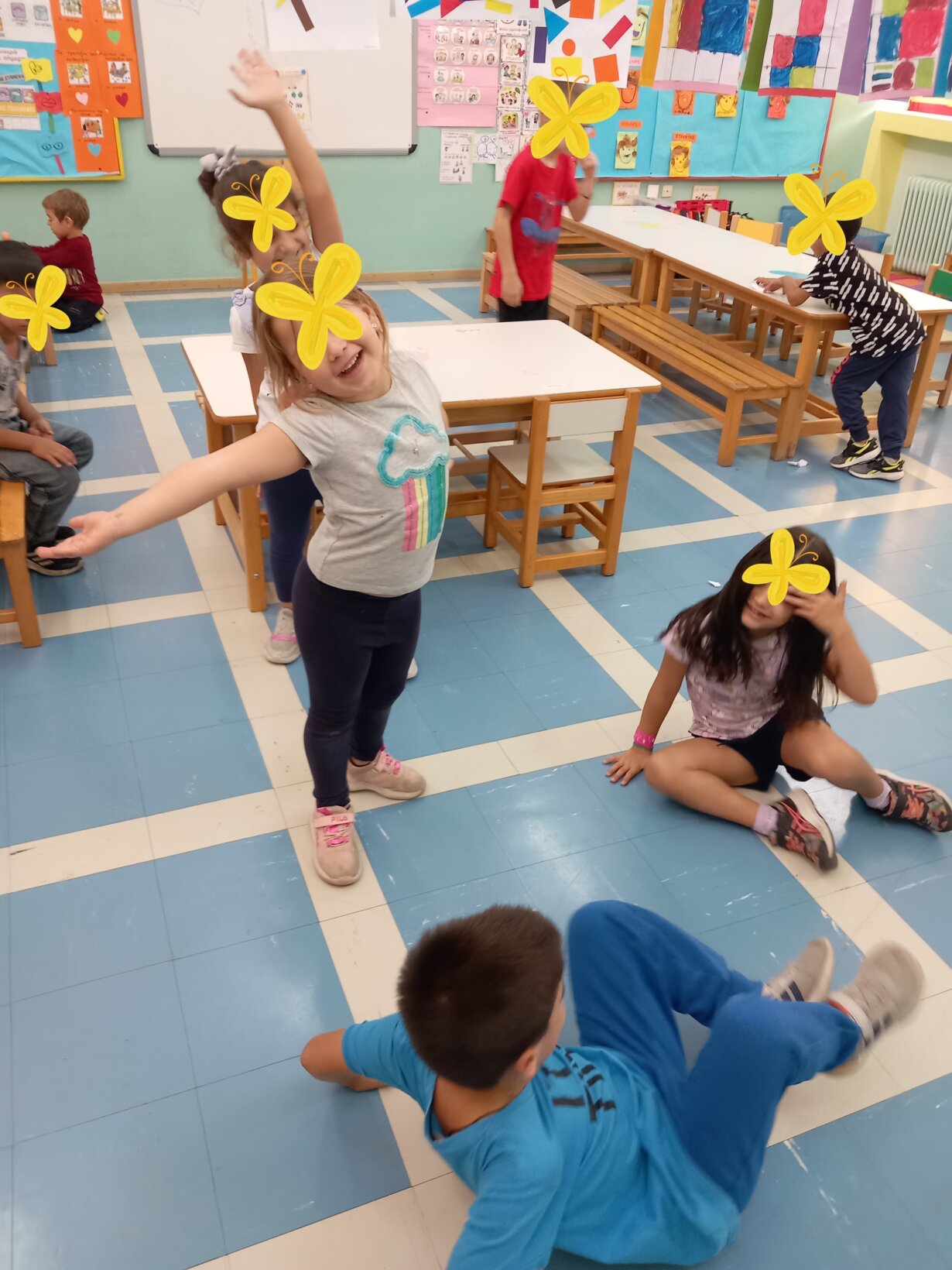 Δοκιμάζουμε περπατήματα διάφορων ζώων και καταλήγουμε στα βήματα του ελέφαντα. Ακούμε το αγαπημένο μας τραγούδι “το ελεφαντάκι” του Φοίβου Δεληβοριά και το χορεύουμε με τους φίλους μας!