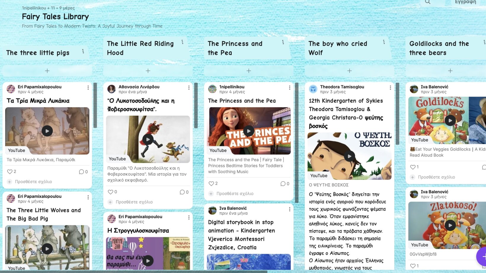 Ταυτόχρονα δημιουργήθηκε συνεργατικά μια ηλεκτρονική βιβλιοθήκη όπου το κάθε μέλος μπορεί να προσθέτει τα παραμύθια που έχει πρόθεση να δουλέψει.