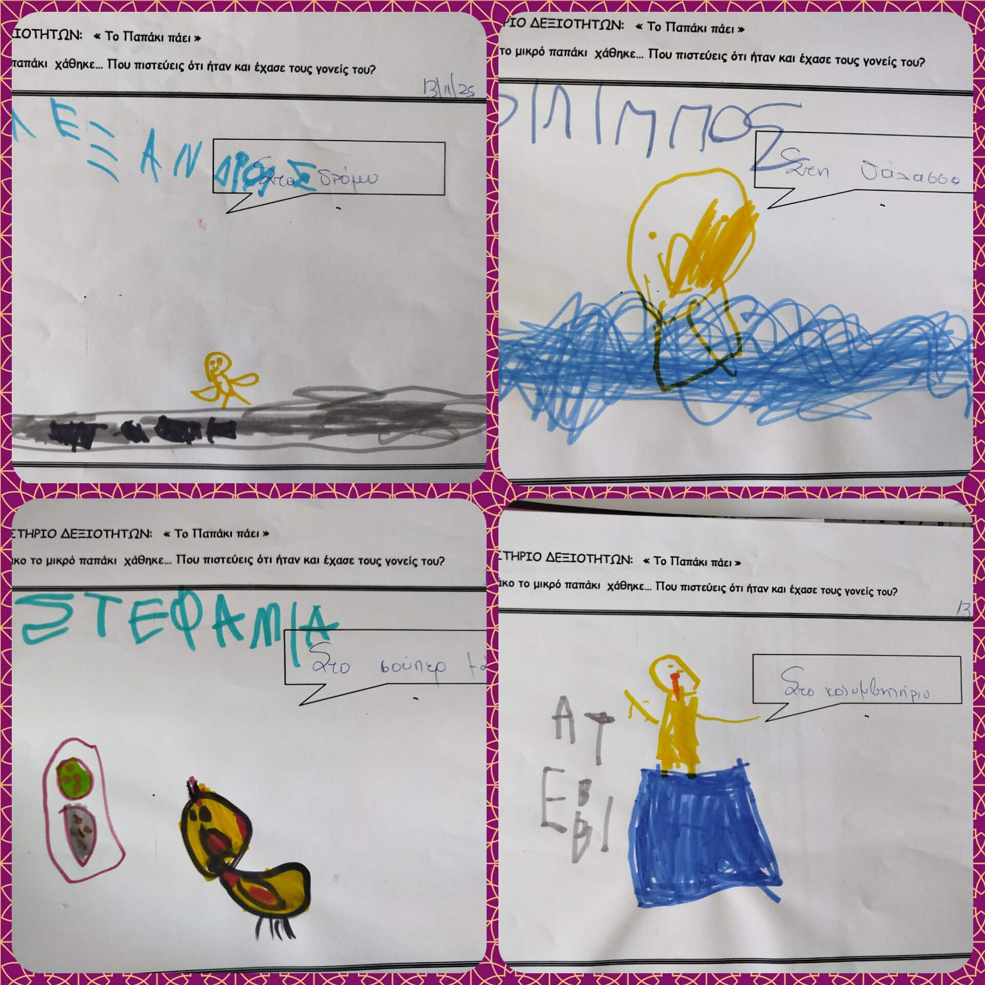 Ξεκίνησε μια συζήτηση στην ολομέλεια, που τα παιδιά κάνανε υποθέσεις για το τι είχε συμβεί. « Που άραγε μπορεί να βρισκόταν ο Πάκο όταν έχασε τη μαμά του?». Δόθηκαν διάφορες απαντήσεις που αποτυπώθηκαν στο παρακάτω φύλλο εργασίας.
