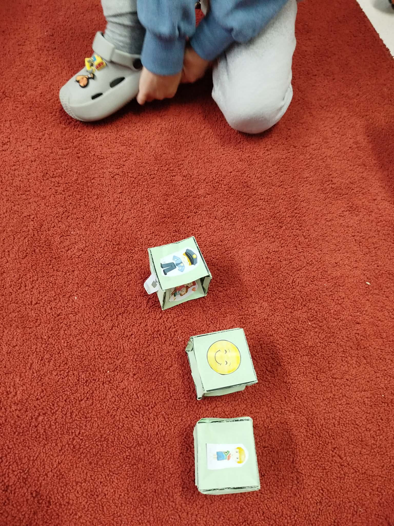 Το κάθε παιδί ρίχνει το κάθε ζάρι μια φορά και φτιάχνει την δική του ιστορία την οποία και μας αφηγείται έχοντας ως βάση τα τρία στοιχεία που θα του φανερώσουν οι κύβοι.