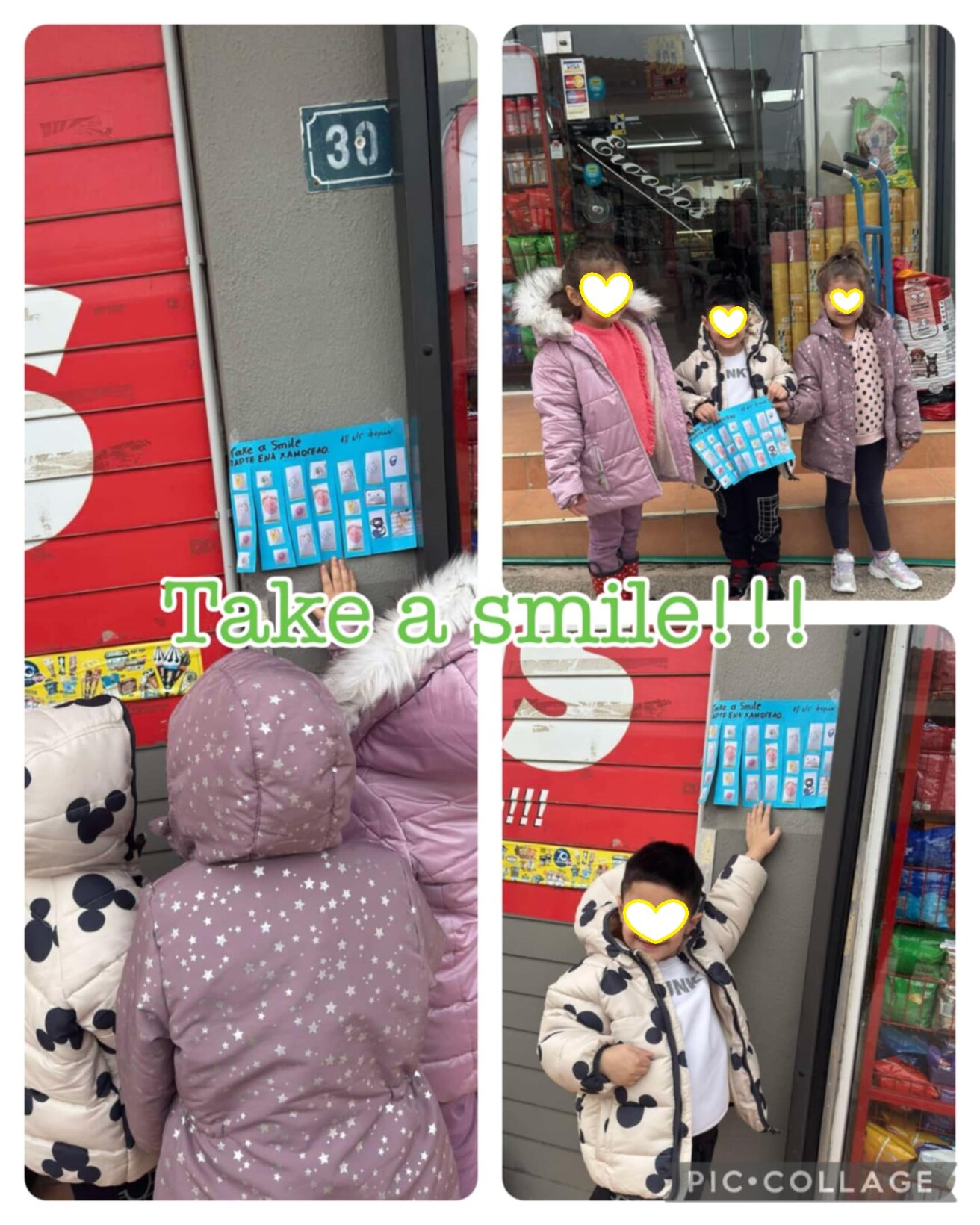 The Etwinning program is being implemented at a steady pace and many interesting activities are taking place! One of them is the creation of collaborative posters that include the smiles drawn by the children of all three countries. The goal is – after the research carried out by the students in the area around the school – to offer smiles to everyone around them!