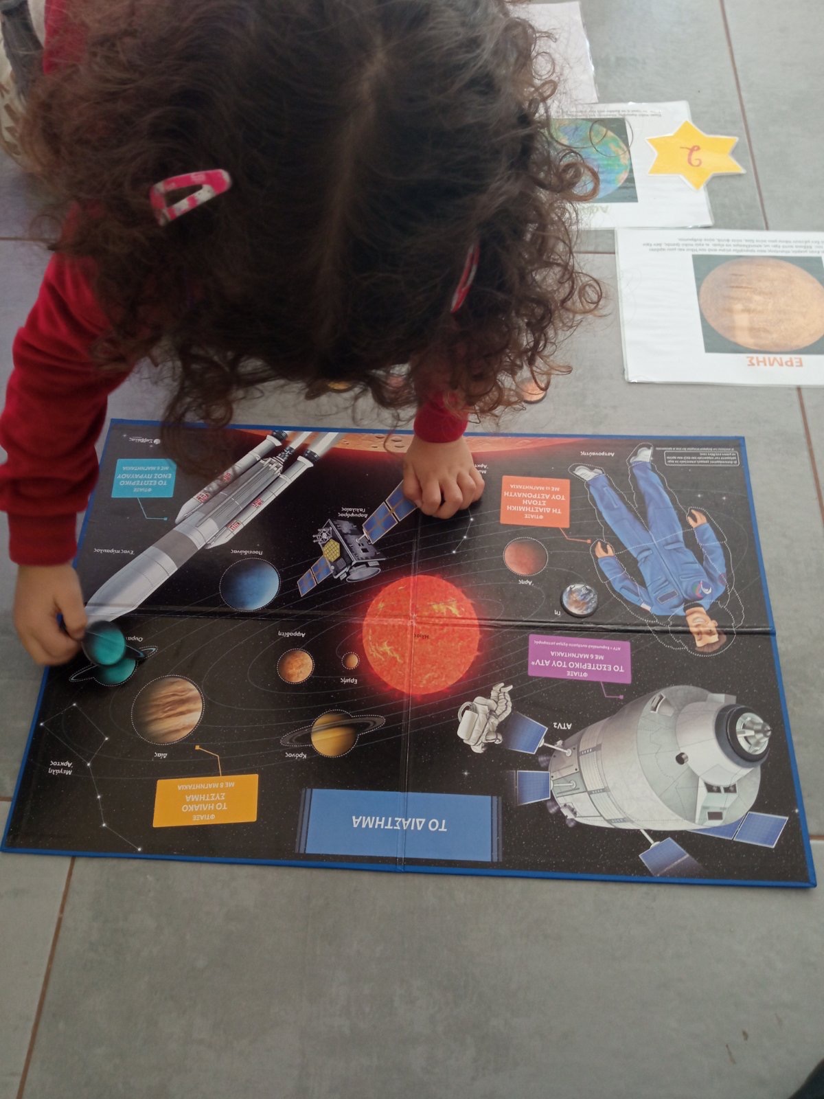 2ο Εργαστήρι Δεξιοτήτων “Η γη γυρίζει” Μαθαίνουμε για τους πλανήτες και το ηλιακό σύστημα επιτραπέζια παιχνίδια Βρίσκουμε τους πλανήτες με τη βοήθεια της beebot οι φανταστικοί πλανητές μας ήλιος ο μύθος του Φαέθωνα , το άρμα του ήλιου