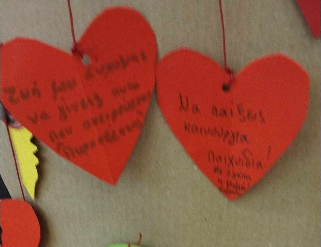 Πάνω σε αυτή την καρδιά ζητάμε από τους γονείς να γράψουν τις ευχές τους ο καθένας για το παιδί του .
