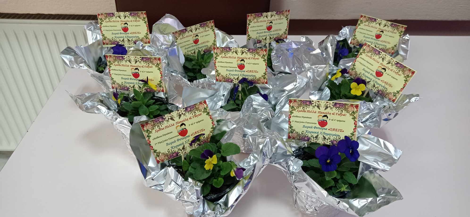 Τα γλαστράκια είναι δωρεά από την κυρία Κυριακή Χ/δημητρίου από τα φυτώρια ΟΑΣΙΣ ώστε να τα προσφέρουμε σε όλους τους εορταζόμενους παππούδες και γιαγιάδες, την οποία και ευχαριστούμε από καρδιάς που χρόνια τώρα στηρίζει με τις δωρεές της τις δράσεις μας.